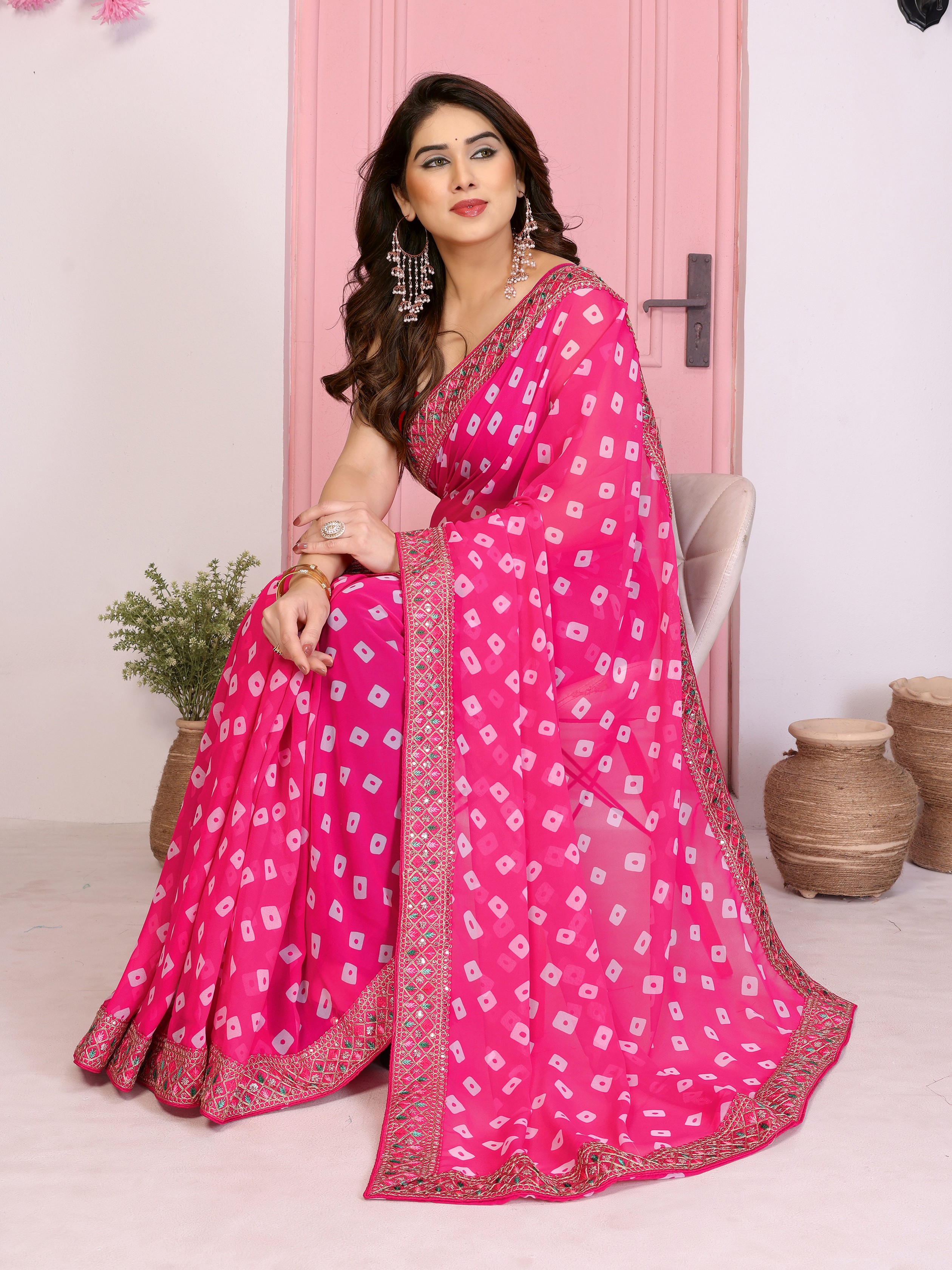 Pink Color Georgette Fabric Embroidered Partywear Saree
