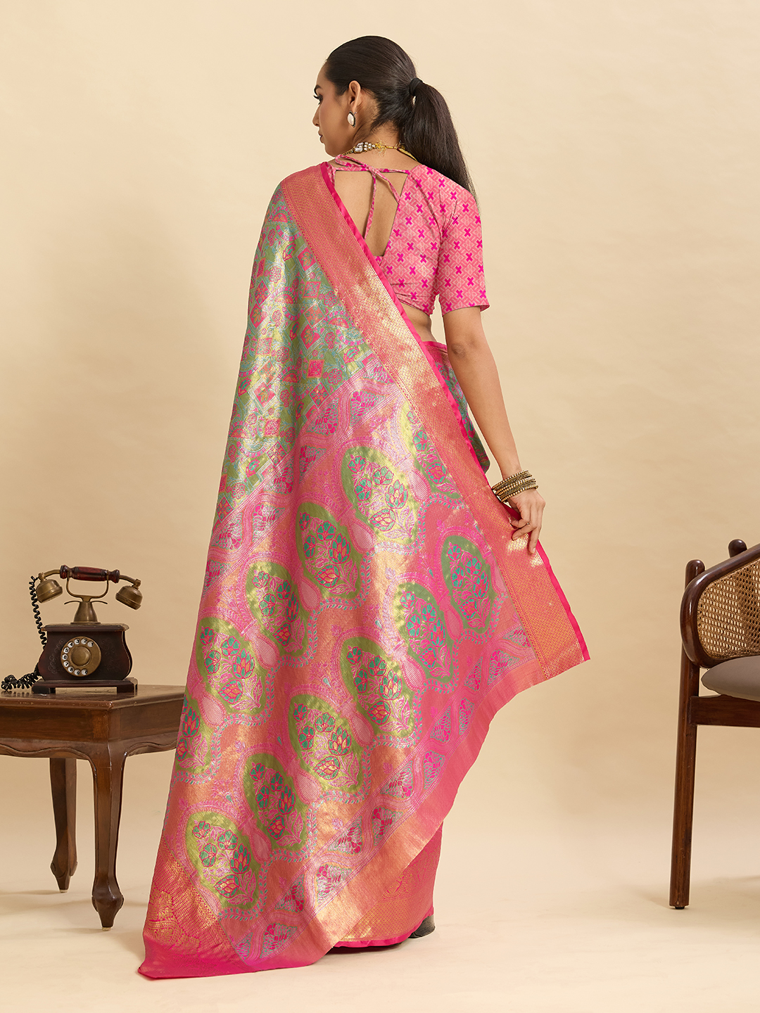 Pink Color Graceful Wevon Jari Designer Silk Blended Partywear Saree