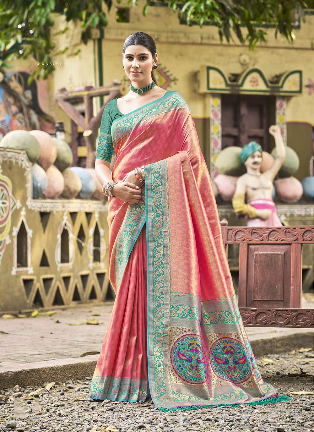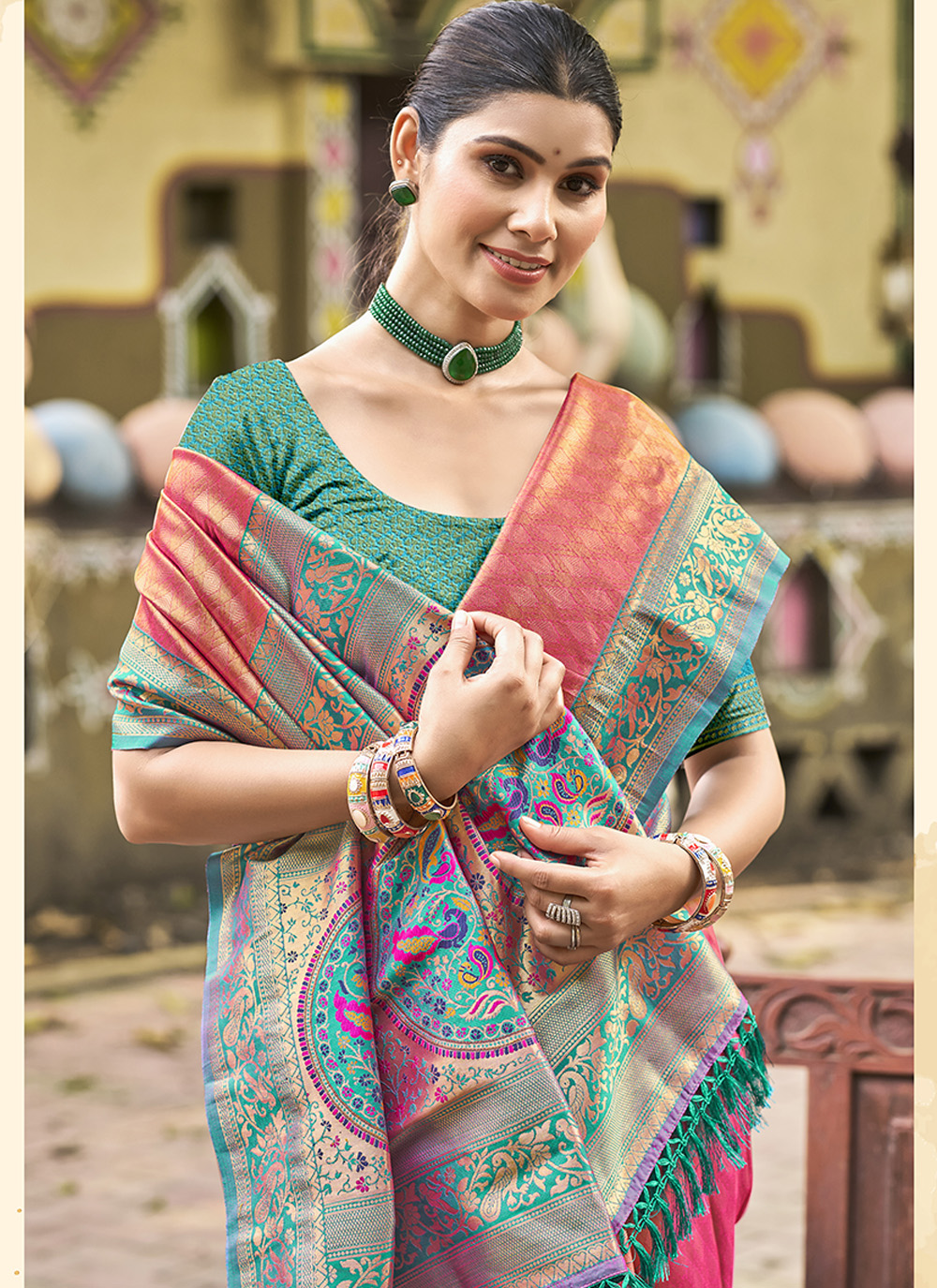 Pink Color Kanjivaram Silk Fabric Designer Ethnic Festive Wear Saree
