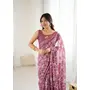 Pink Color Moss Satin Patta Printed Ethnic Partywear Saree