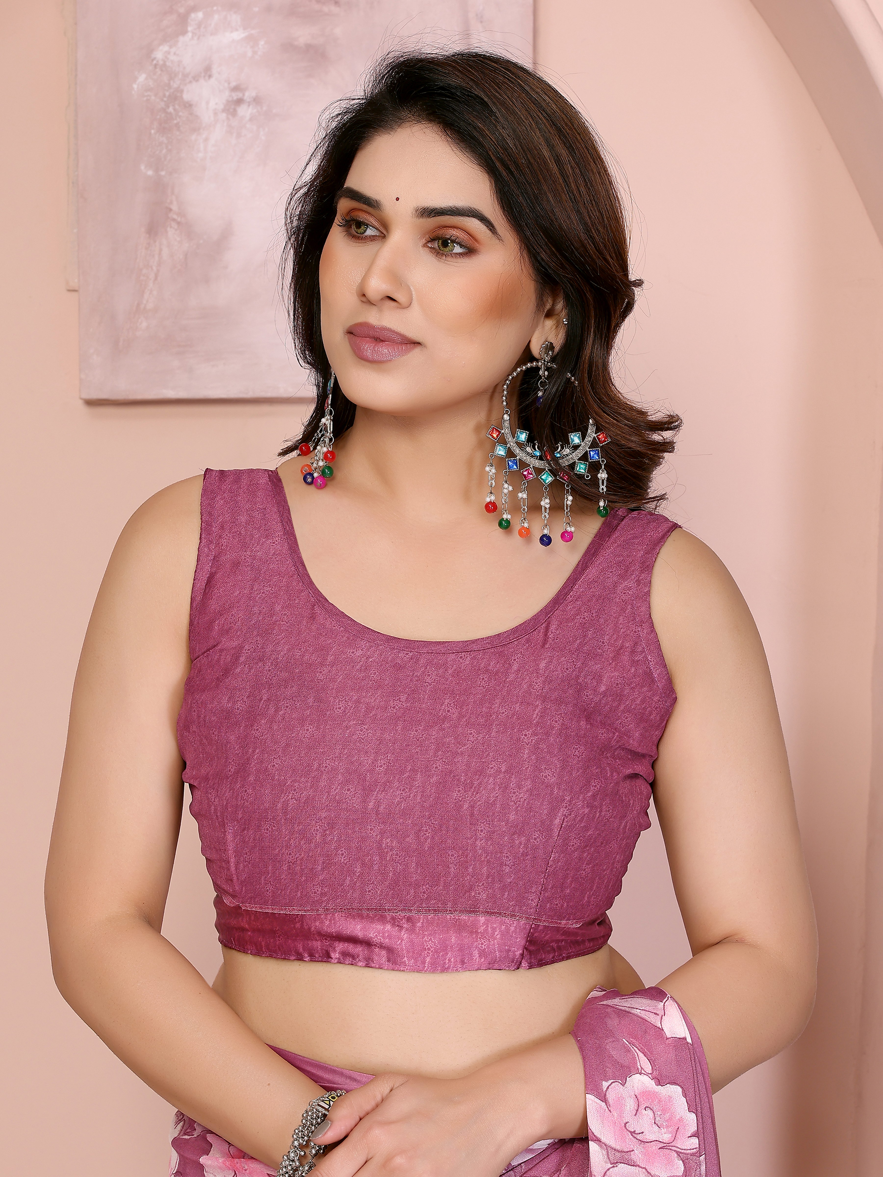 Pink Color Moss Satin Patta Woven Patta Designer Printed Fancy Saree