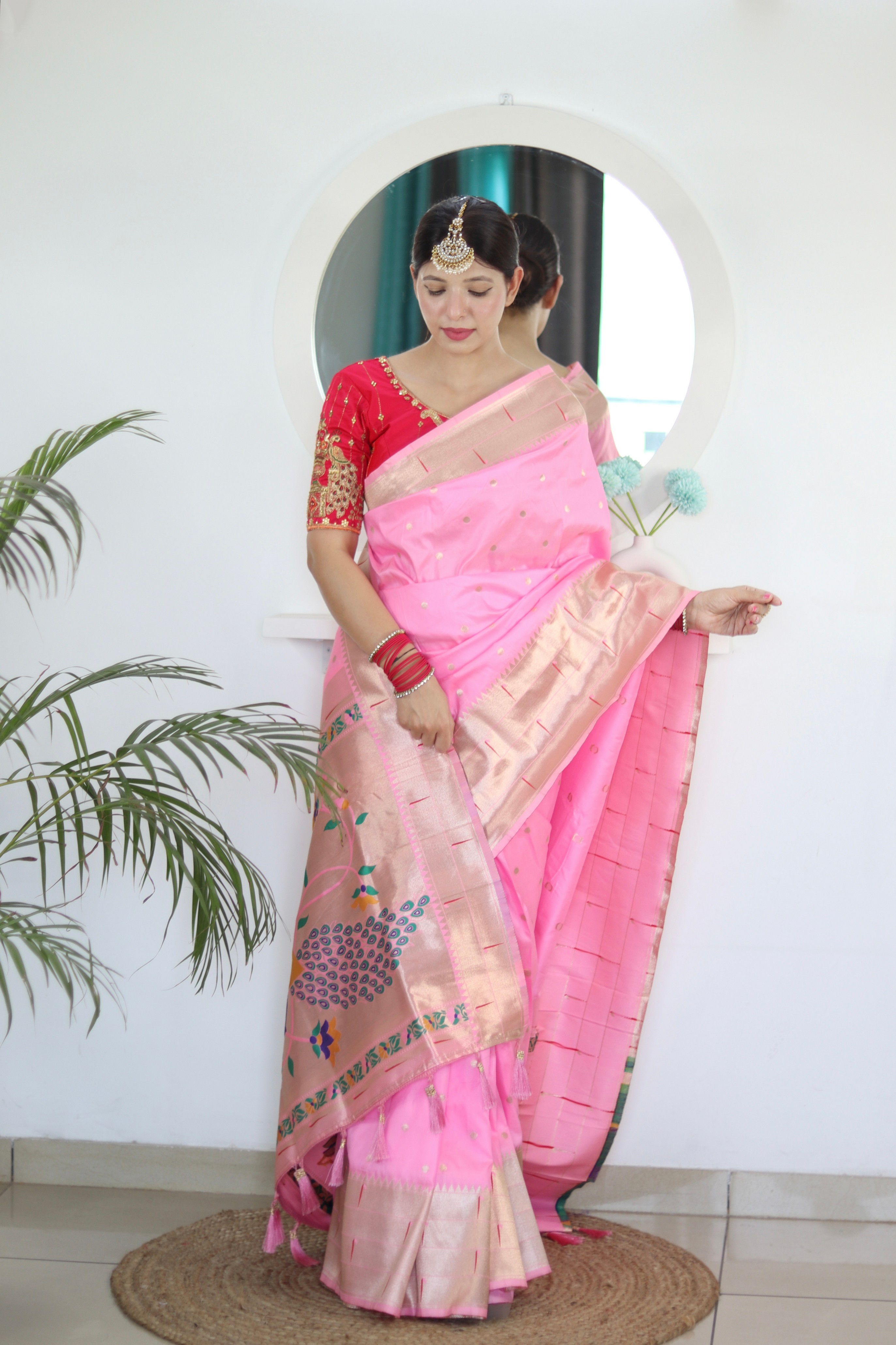 Pink Color Paithani Silk Saree With Beautiful Festive Looks