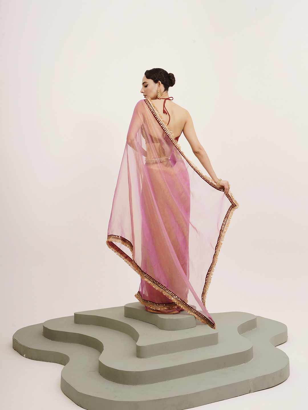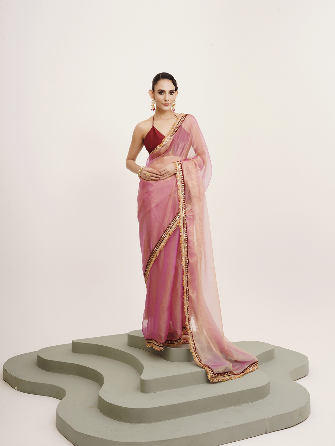 Pink Color Tissue Fabric Embellished Sequinned Work Fancy Saree