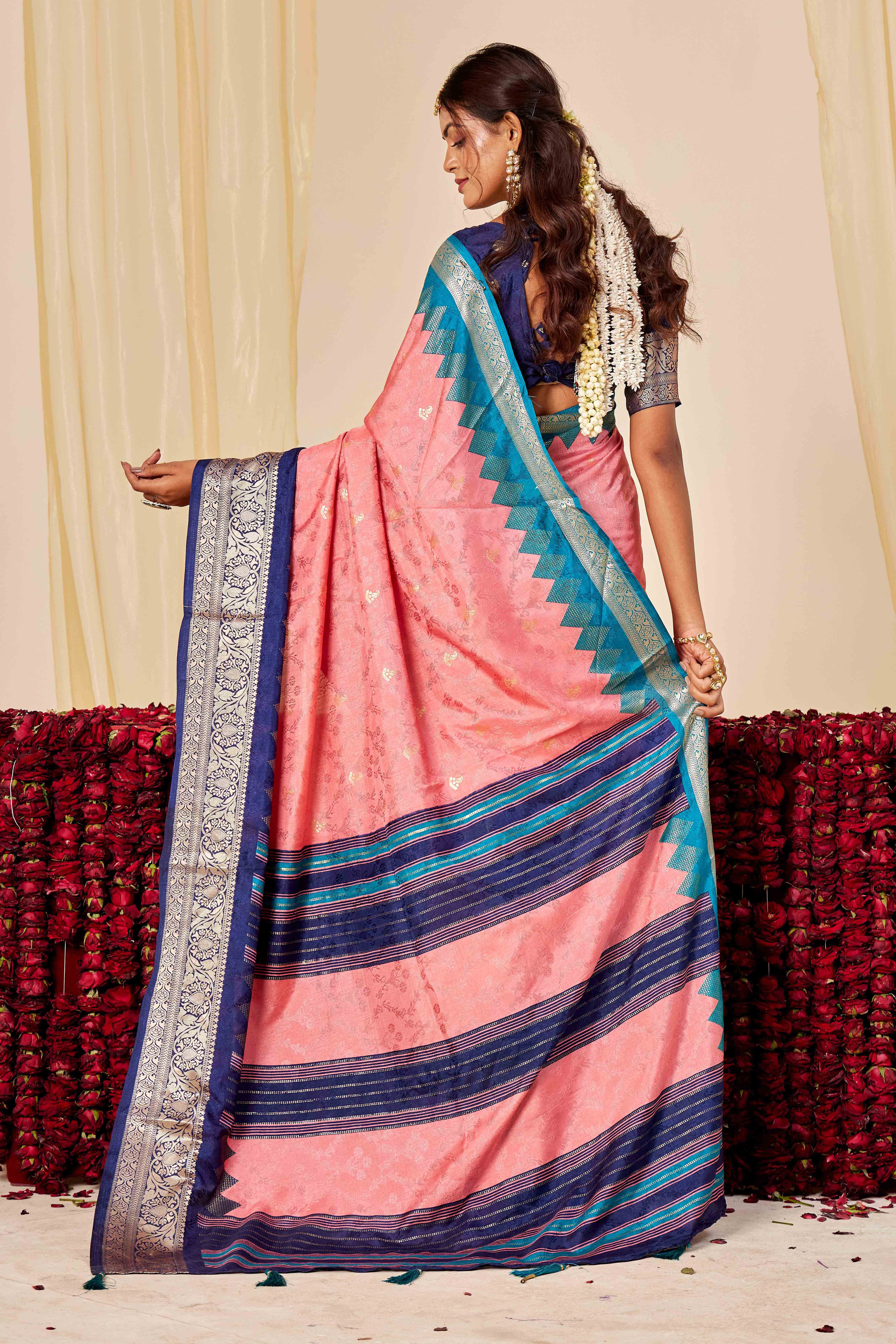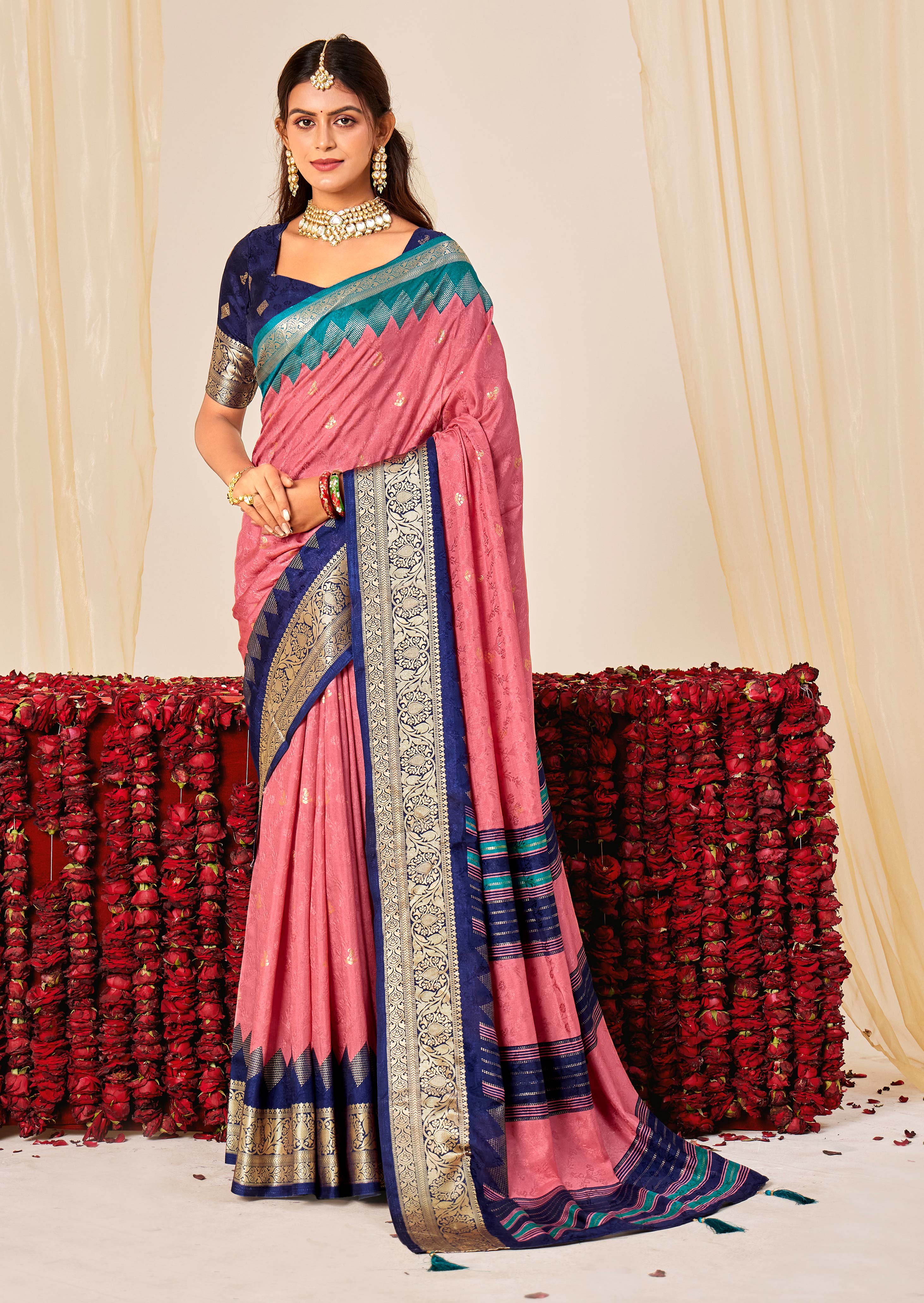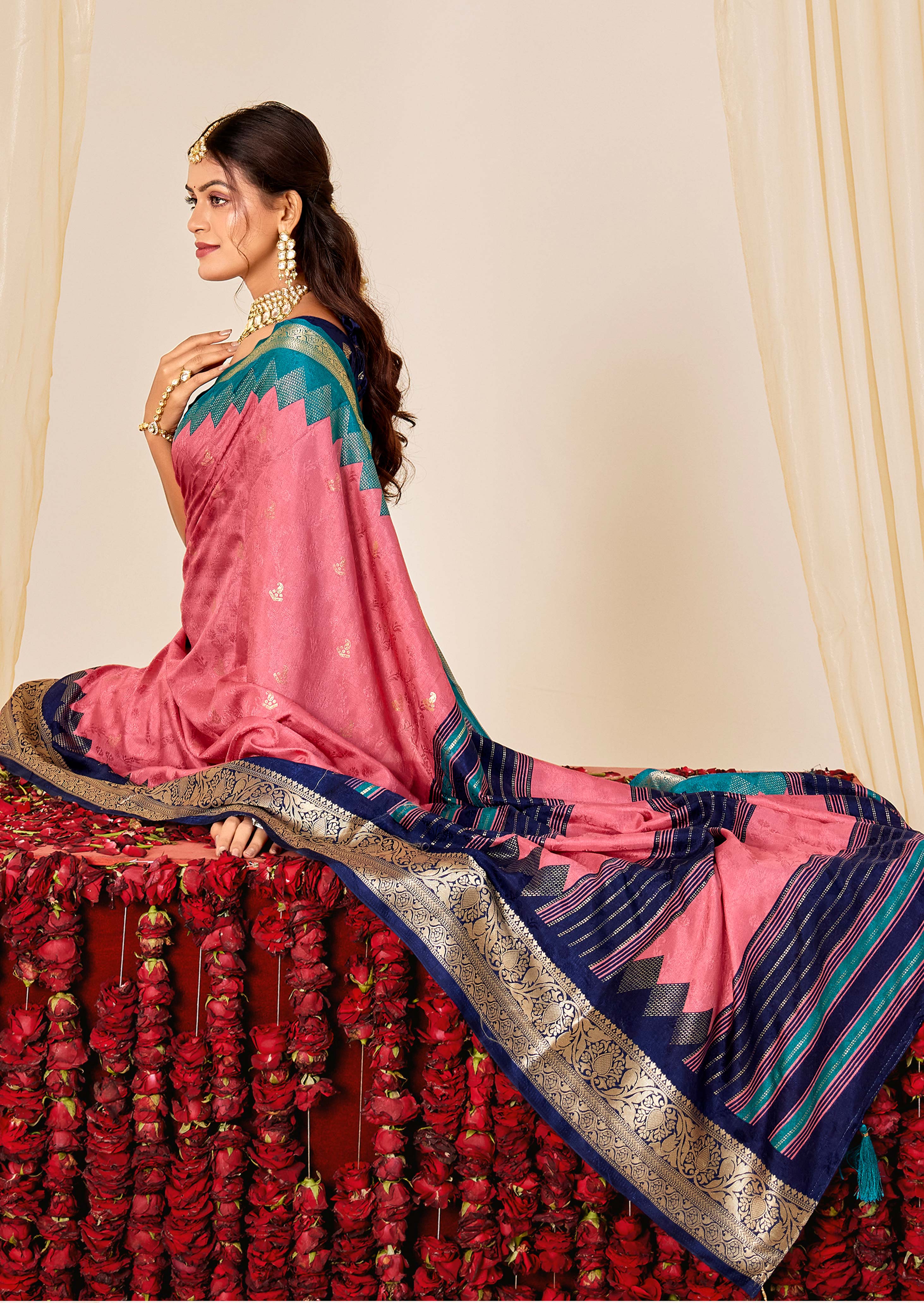 Pink Color Velvet Tussar Silk Fabric Woven Saree With Smart Elegant Print