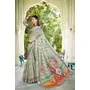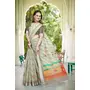 Pista Color Linen Cotton Fabric Woven Border Designer Printed Saree