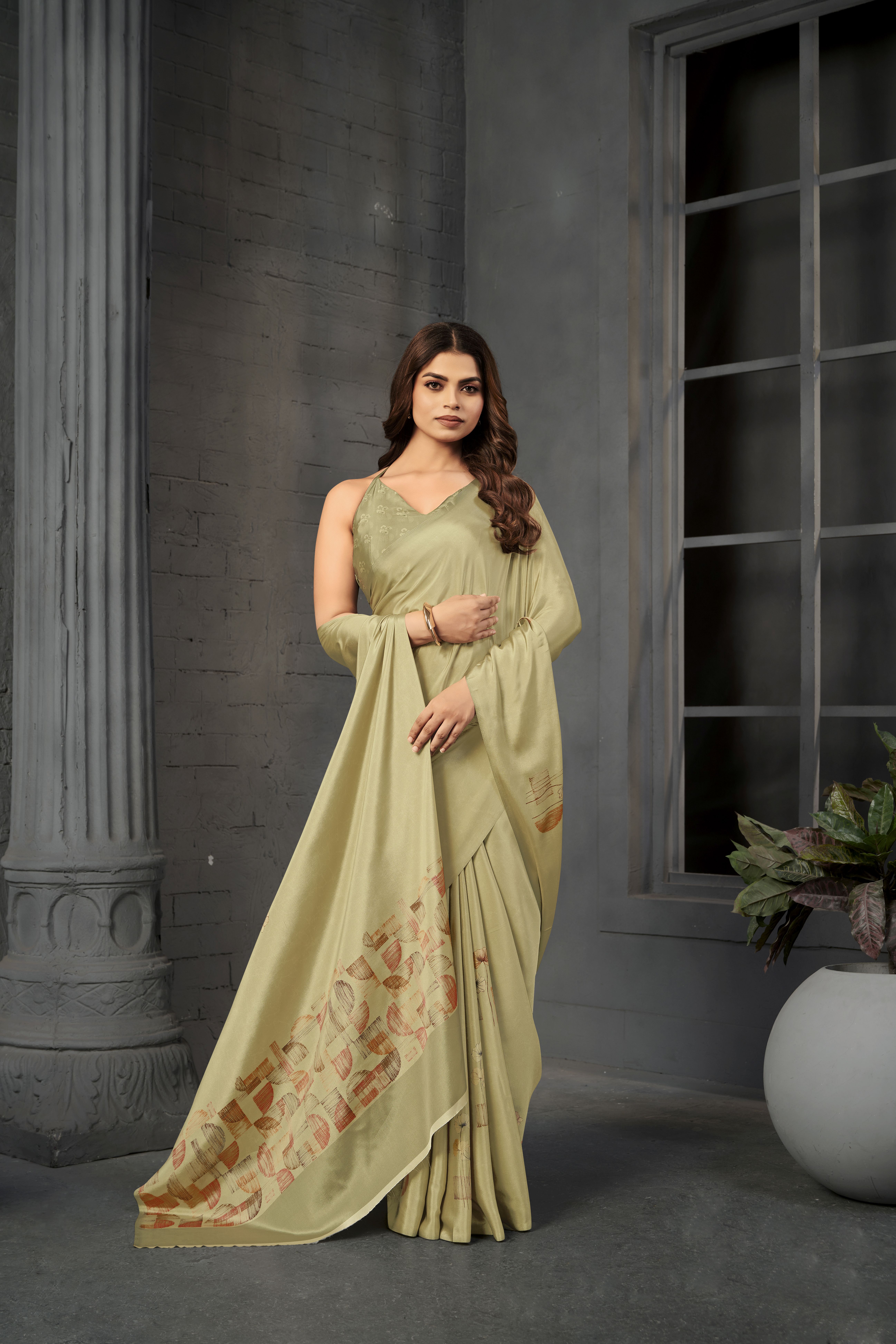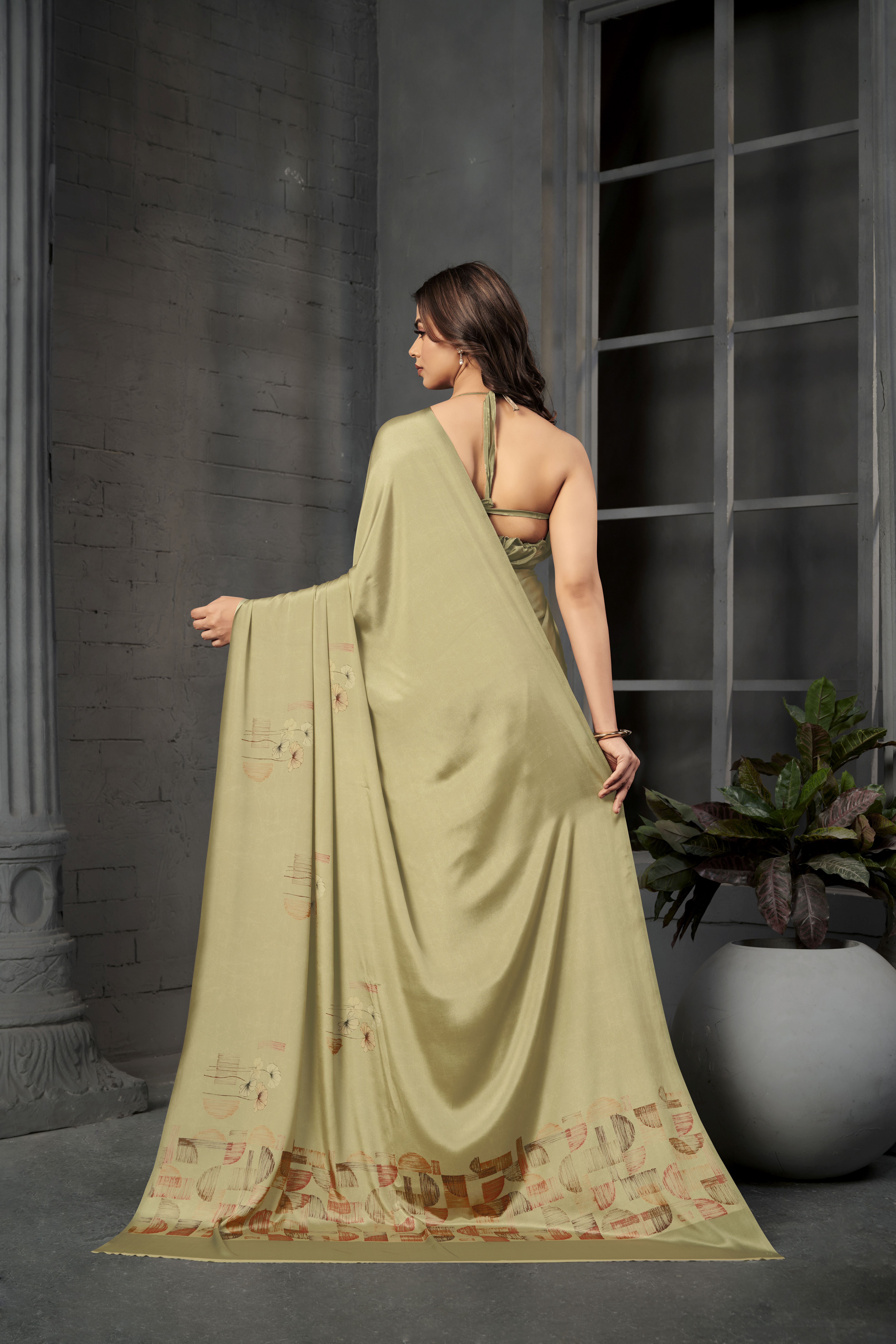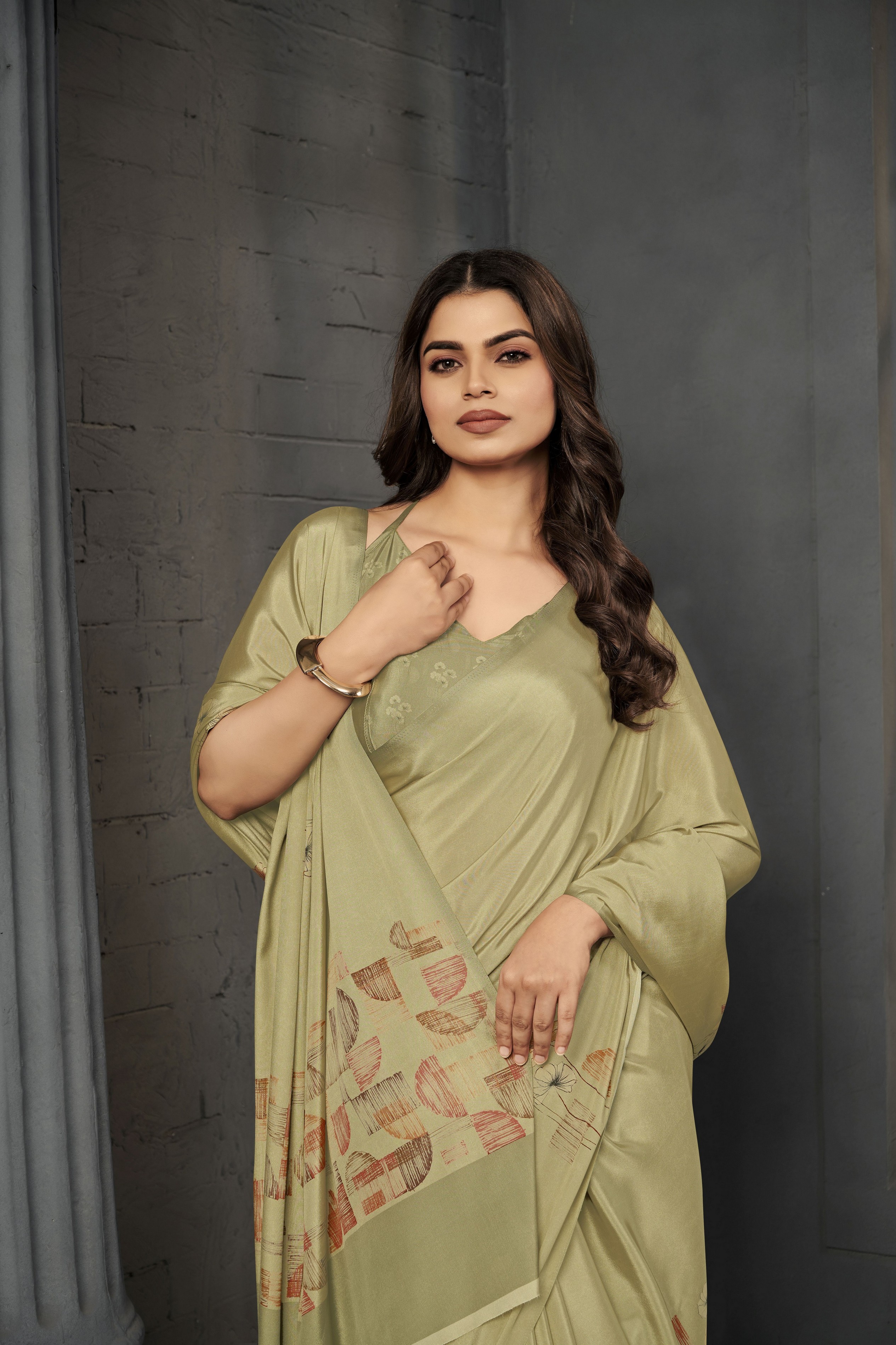 Pista Color Malai Crepe Silk Fabric Designer Digital Printed Beautiful Fancy Partywear Saree