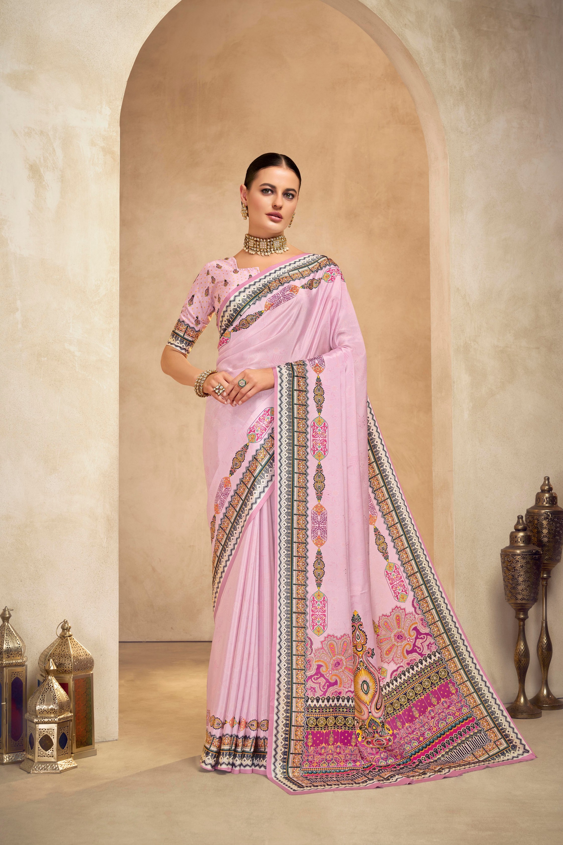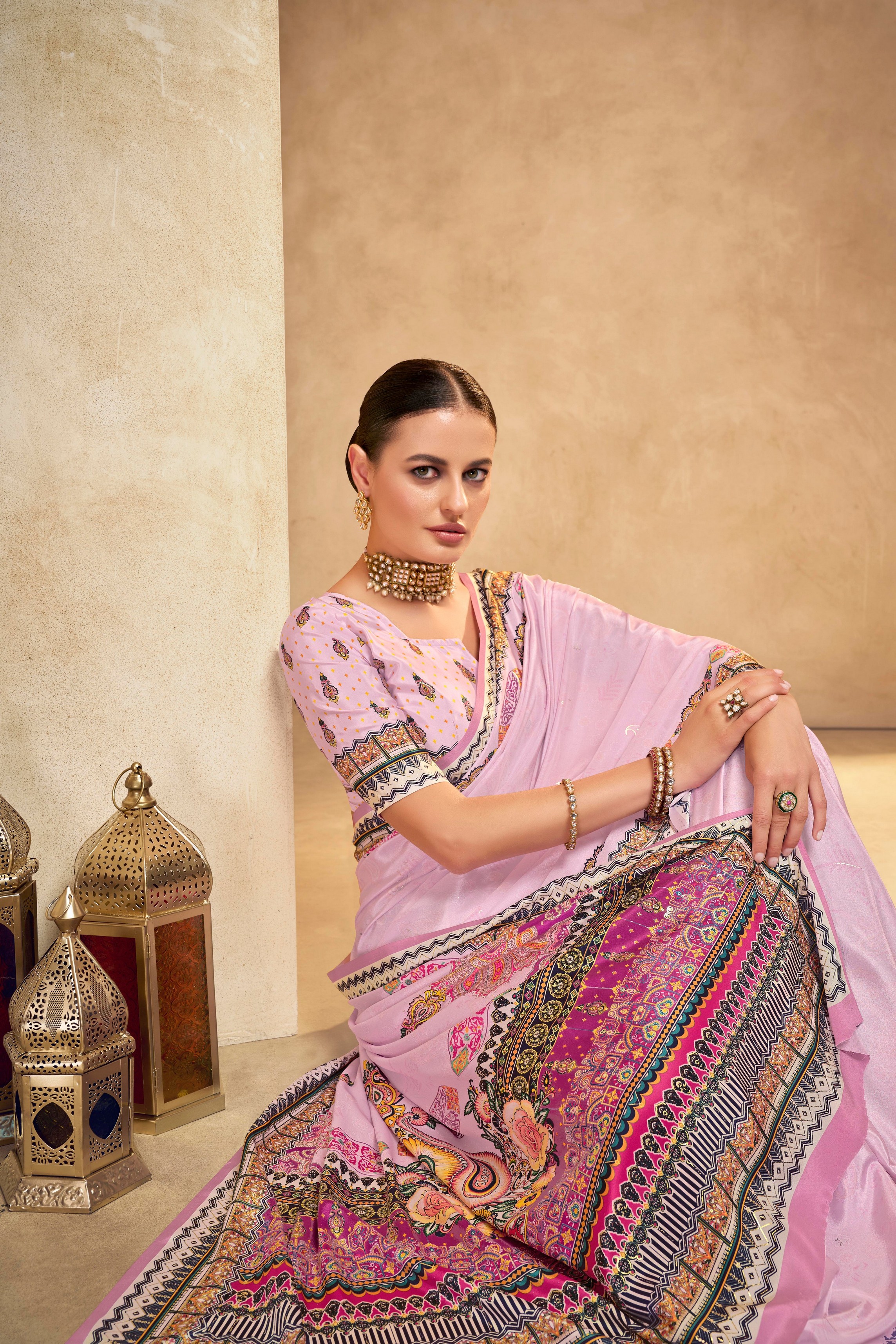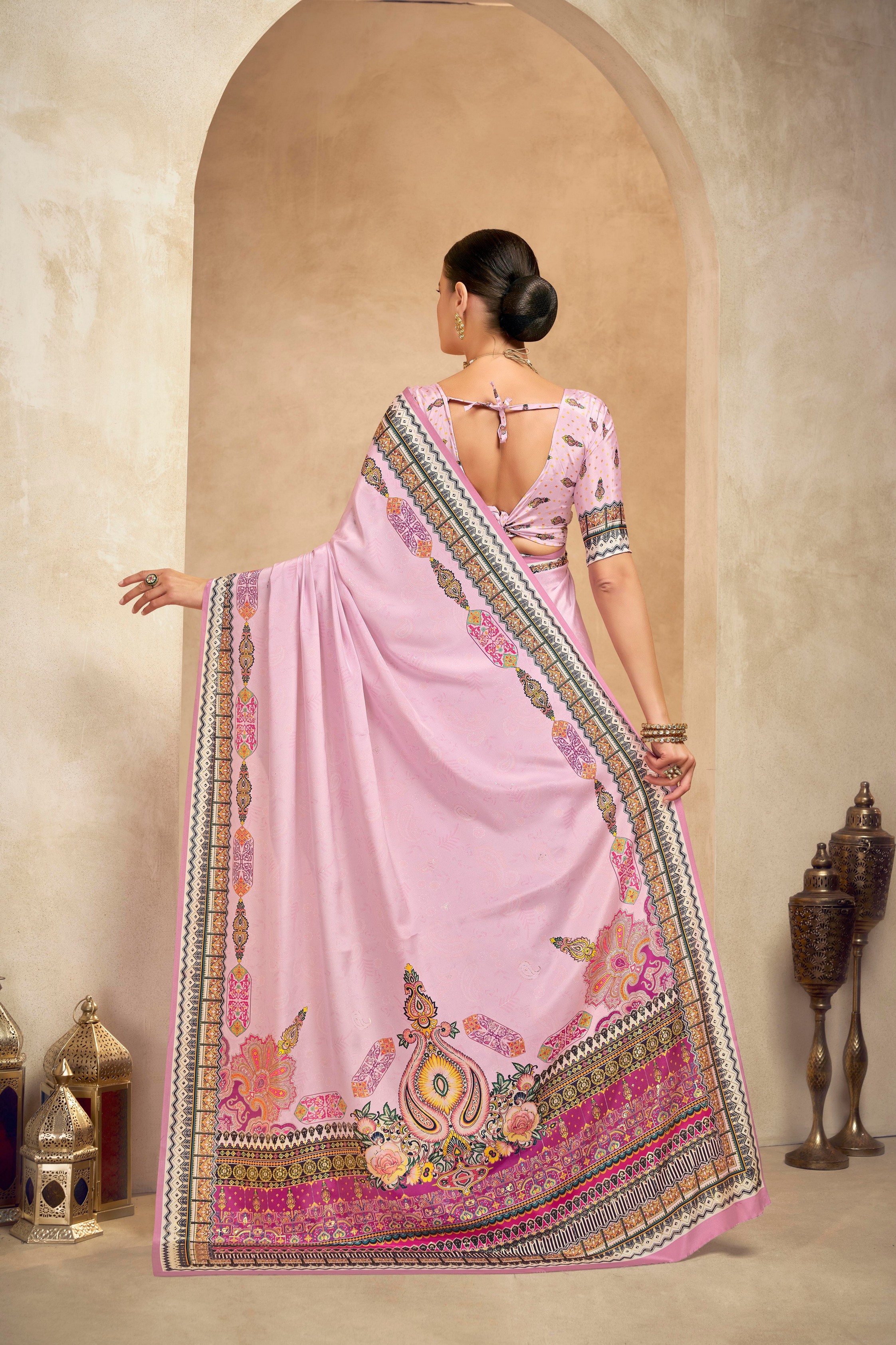 Purple Color Crepe Silk Fabric Position Digital Foil Printed Saree