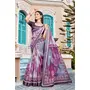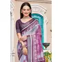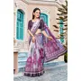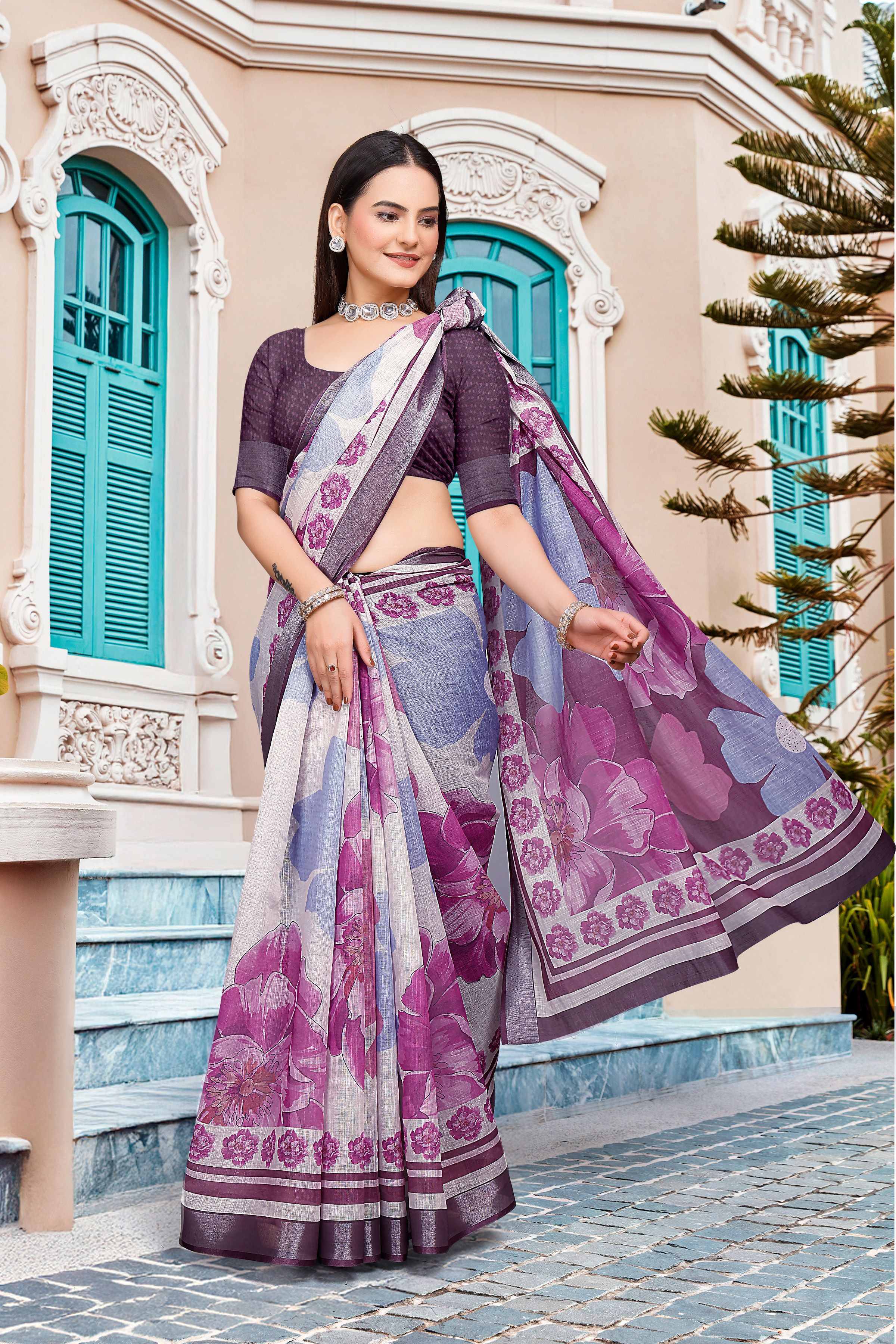 Purple Color Linen Cotton Fabric Woven Border Designer Printed Saree