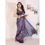 Purple Color Moss Satin Patta Fabric Designer Printed Saree