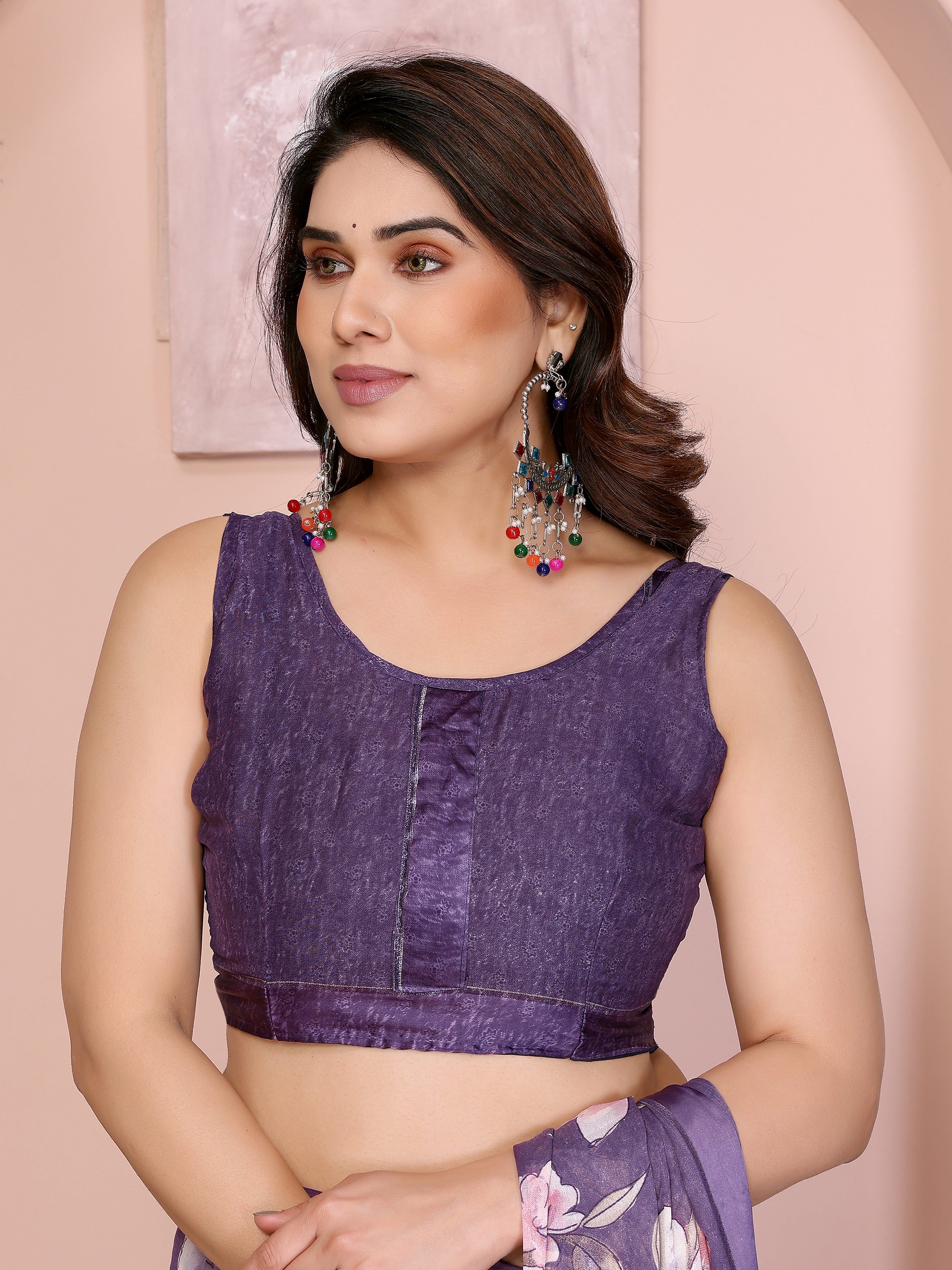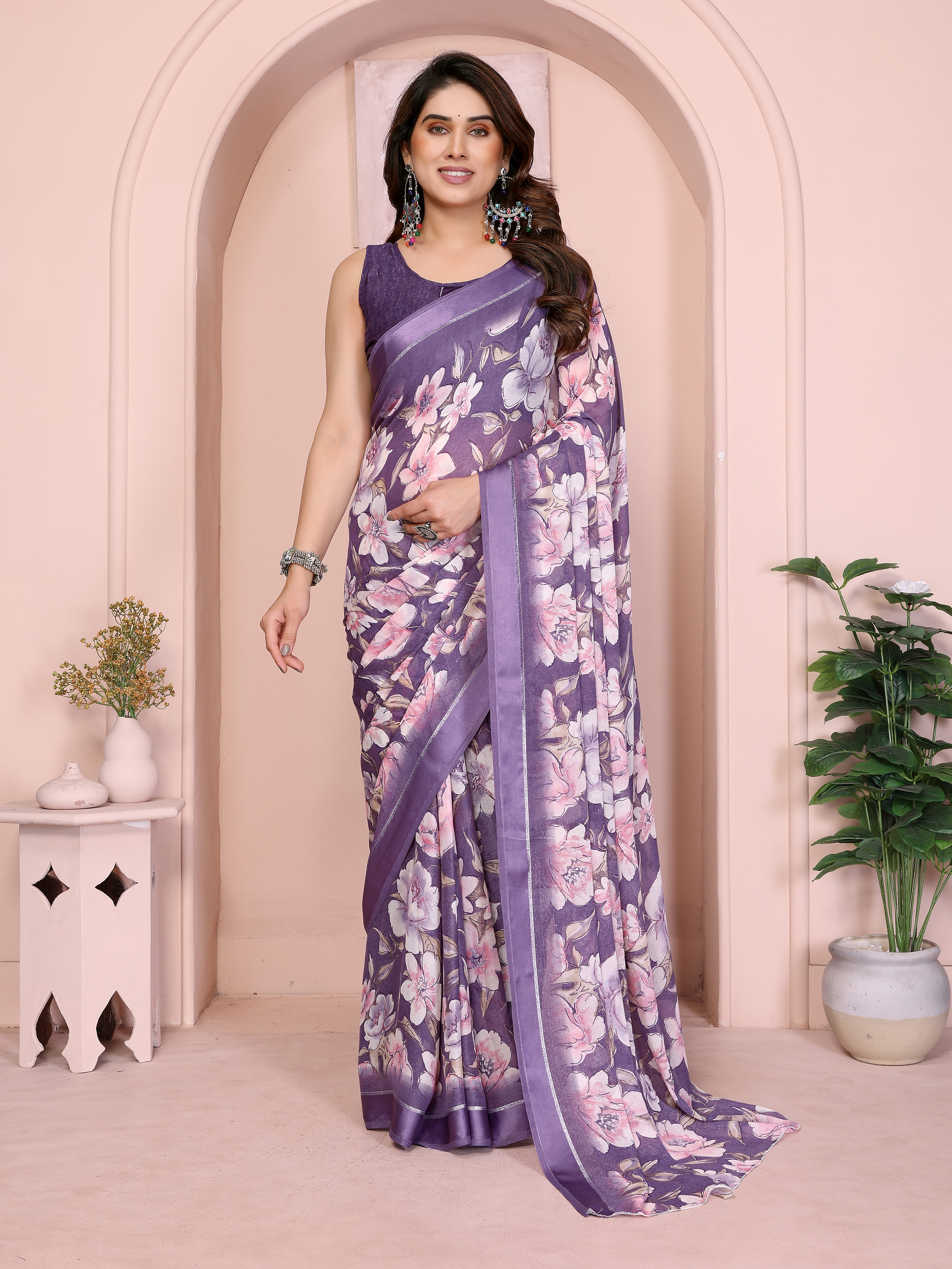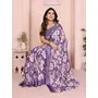 Purple Color Moss Satin Patta Woven Patta Designer Printed Fancy Saree