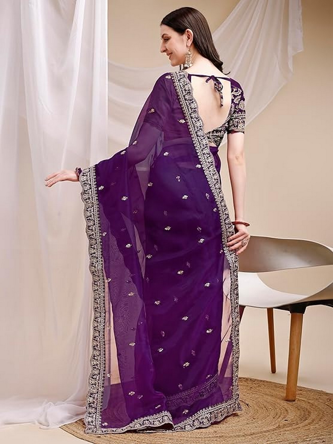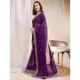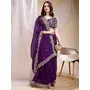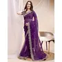 Purple Color Organza Fabric Ethnic Embroidered Partywear Saree