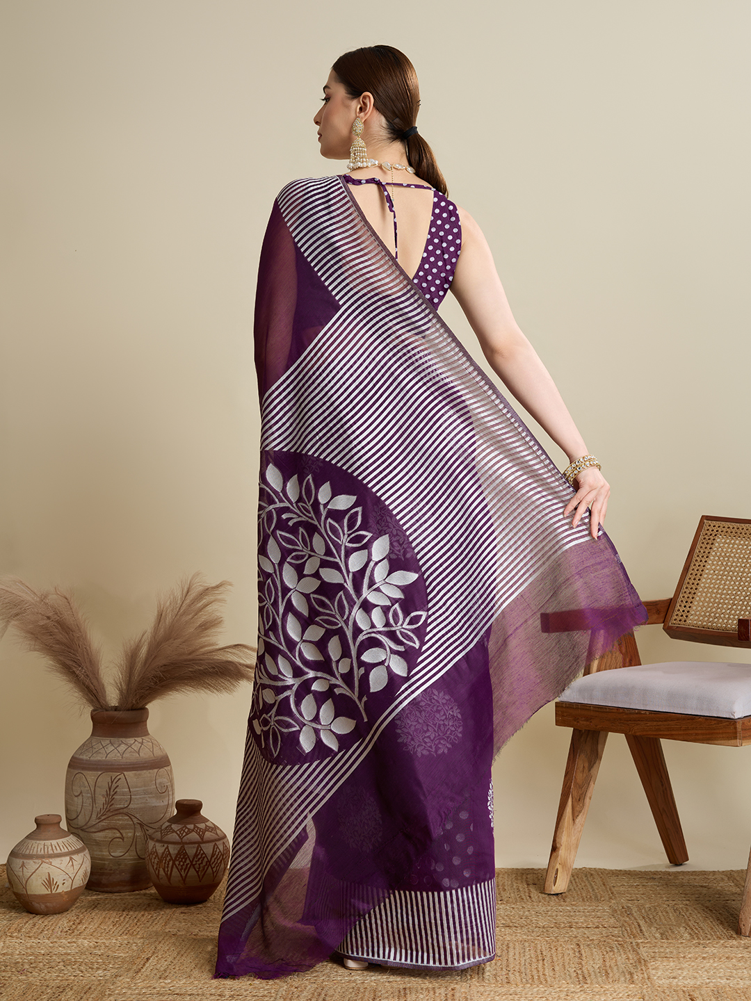 Purple Color Soft Silk Fabric Wevon Flower Designer Stylish Partywear Saree