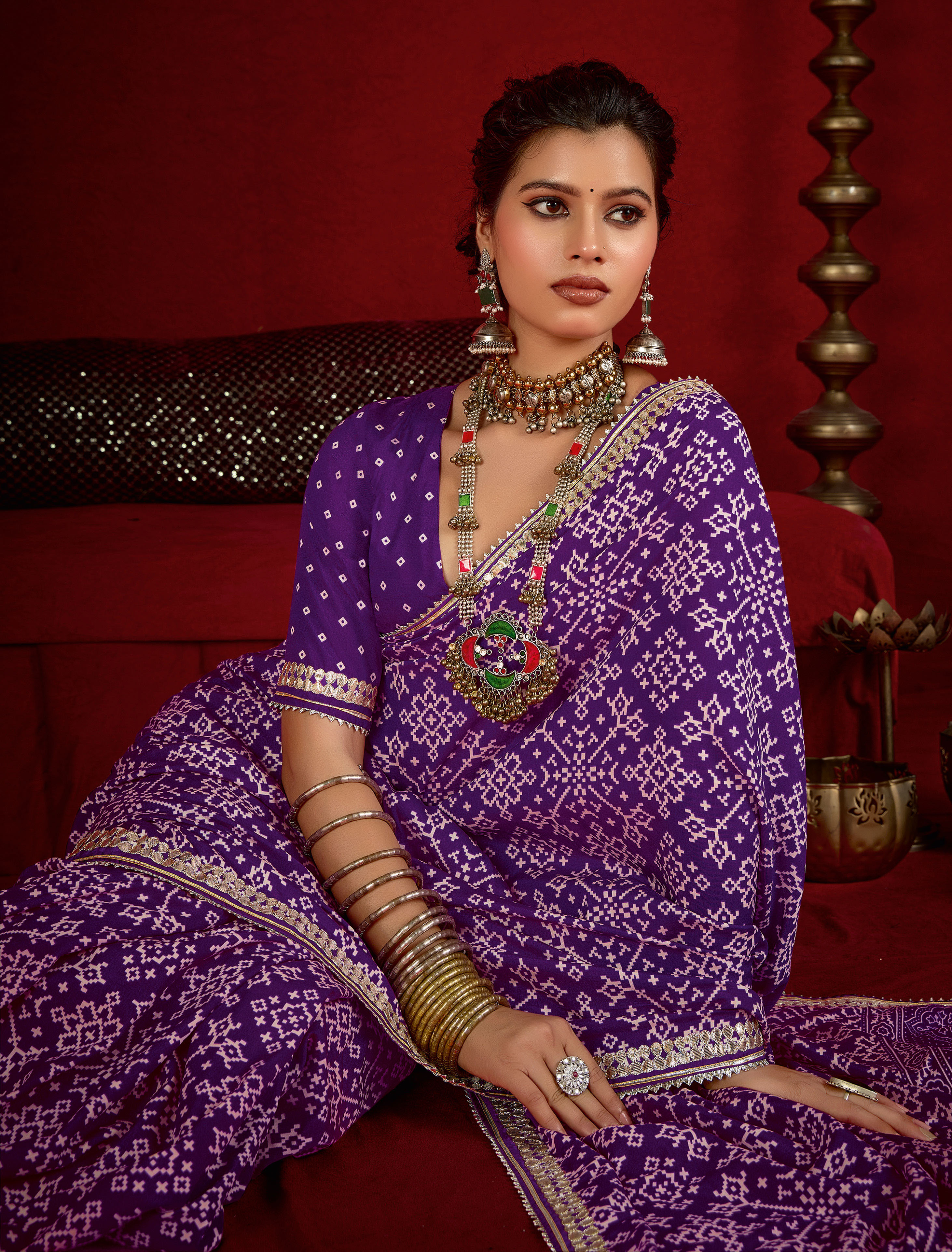 Purple Color Velvet Tussar Silk Beautiful Partywear Saree