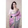 Purple Color Woven Jari Border Designer Madhubani Digital Printed Ethnic Tussar Silk Saree