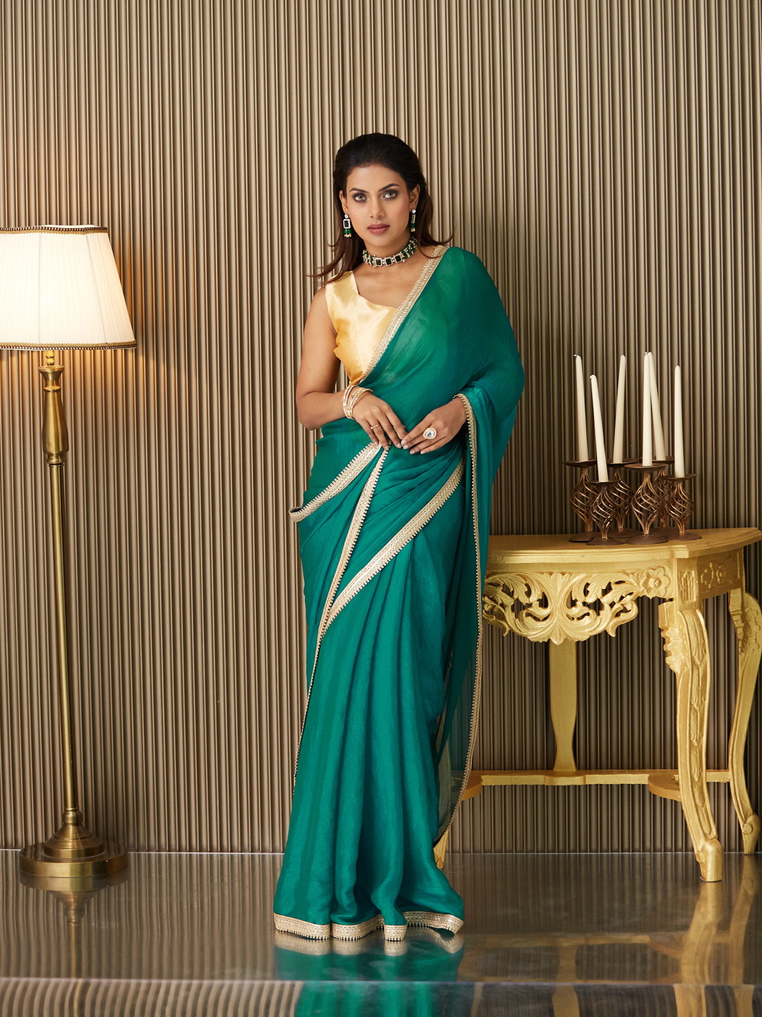Rama Color Chiffon Fabric Fancy Designer Bollywood Party Saree