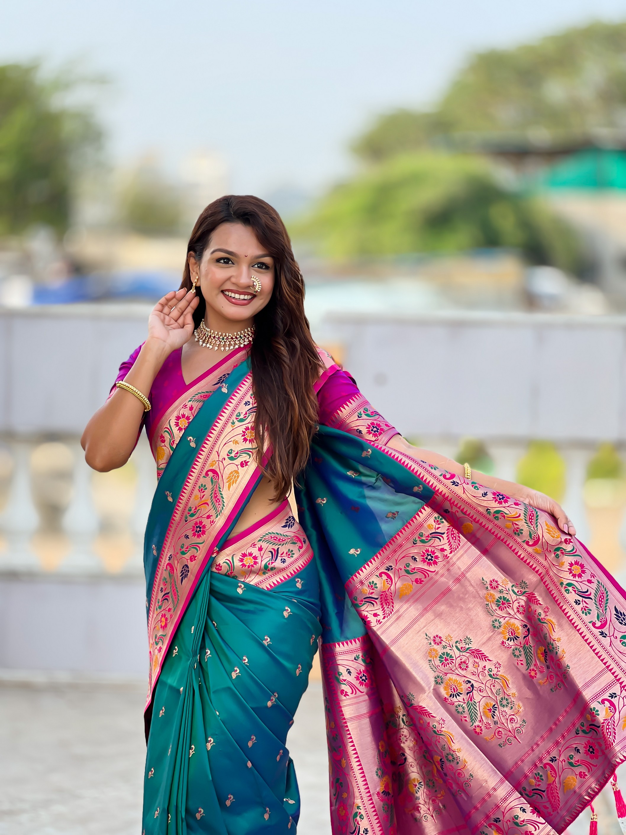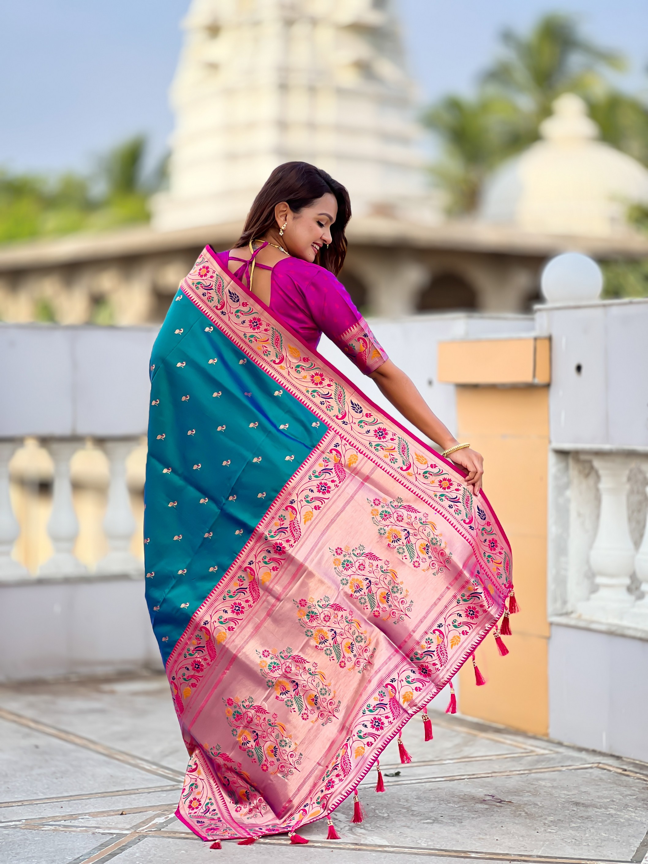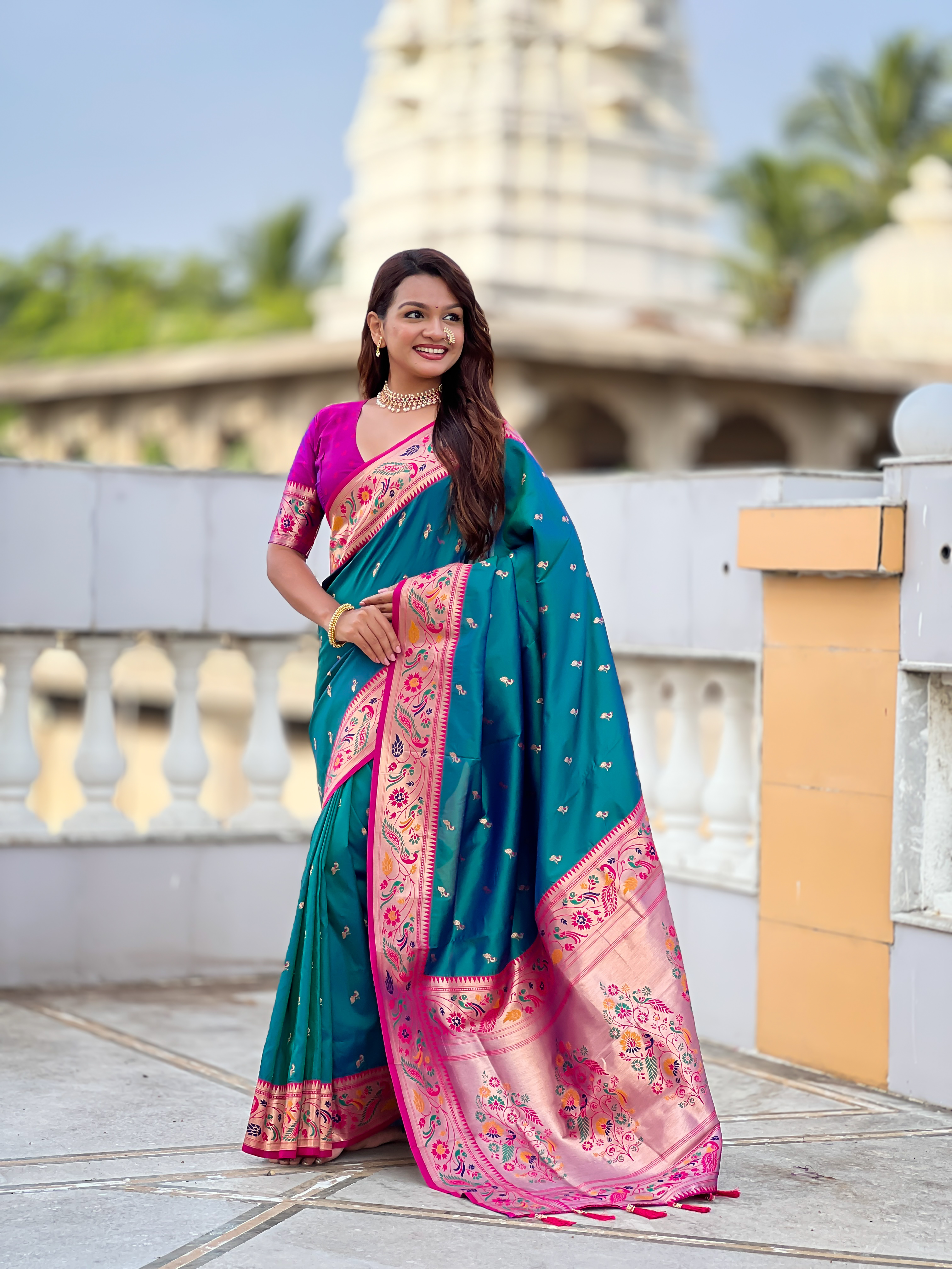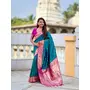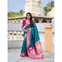 Rama Color Paithani Silk Fabric Woven Meenakari Jacquard Designer Saree