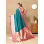 Rama Color Soft Silk Fabric Ethnic Weaving Jacquard Designer Partywear Heavy Saree
