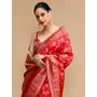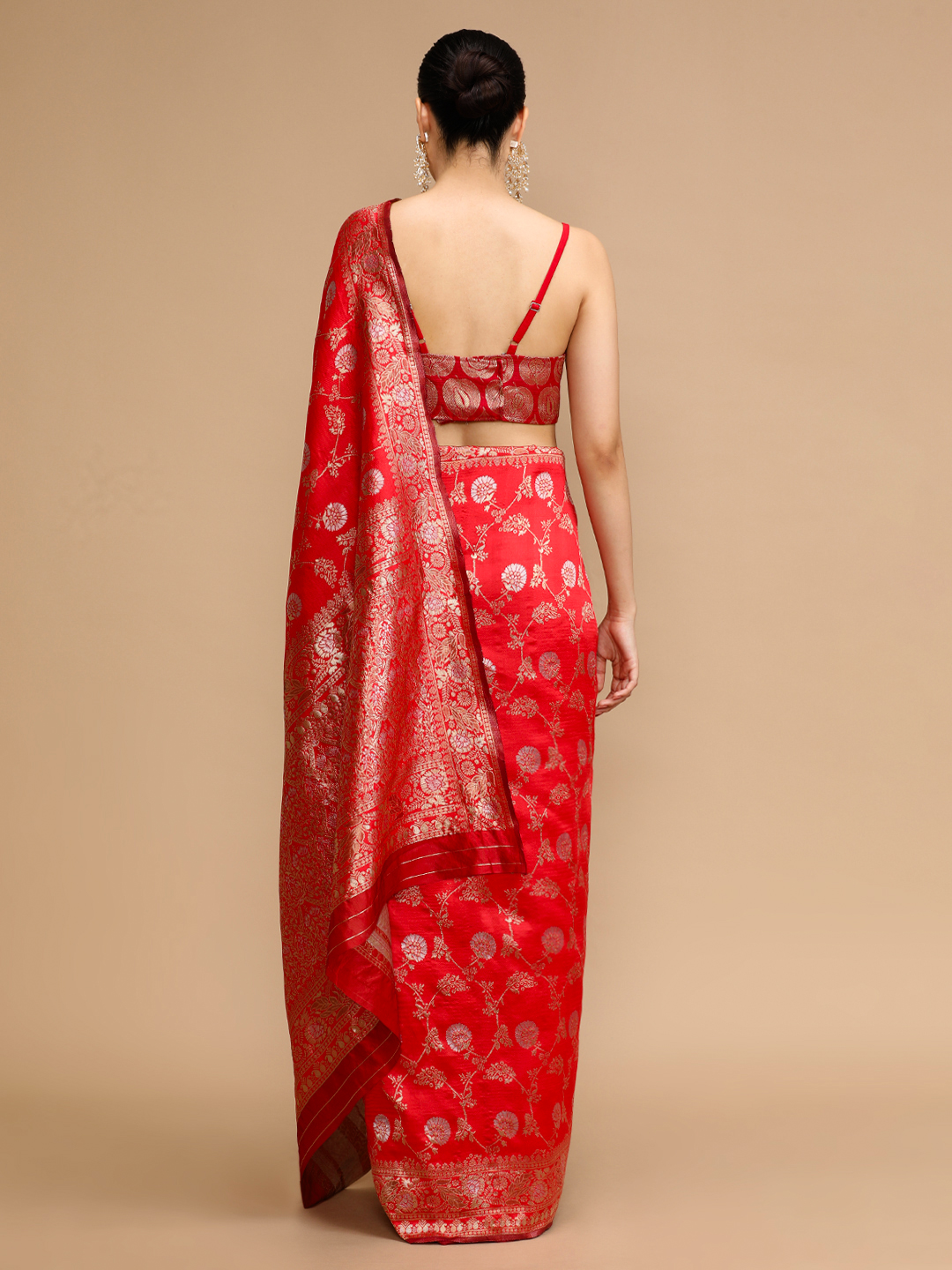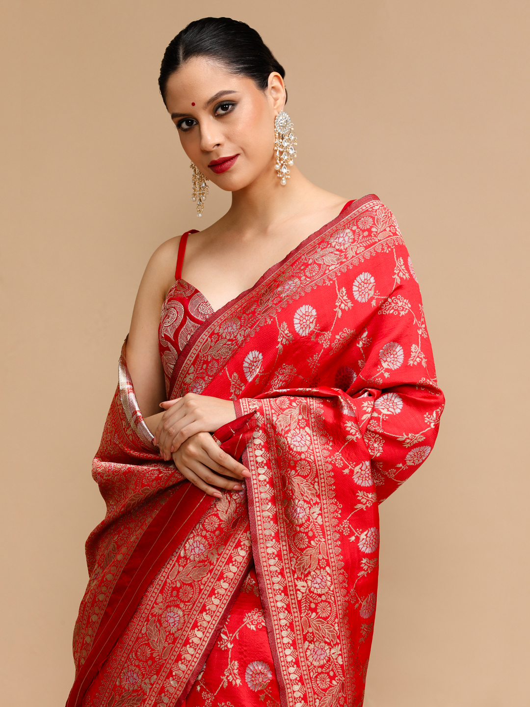 Red Color Lichi Silk Saree Woven Jacquard Designer For Ceremonial Looks