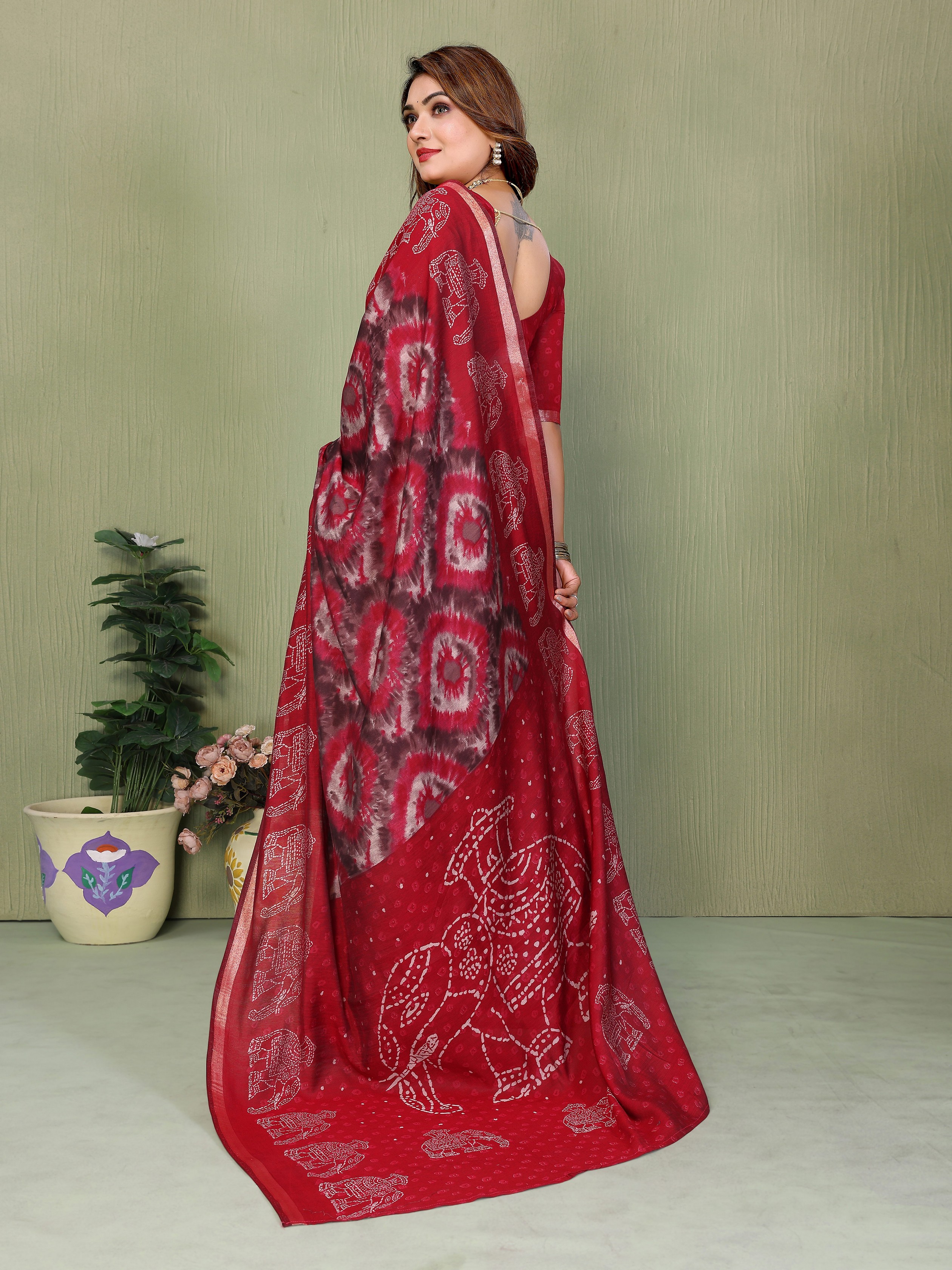 Red Color Mul Cotton Fabric Designer Printed Festive Special Saree