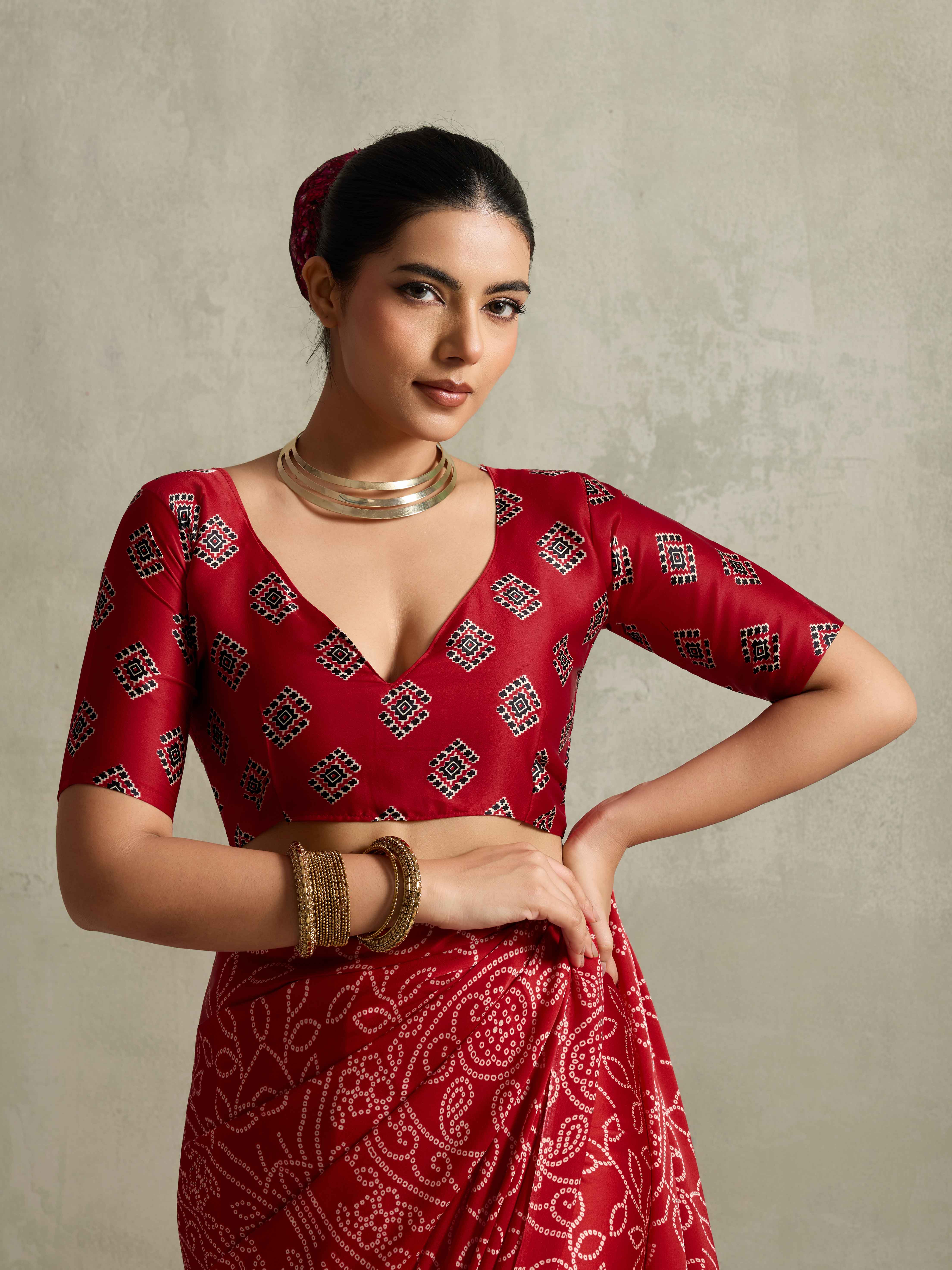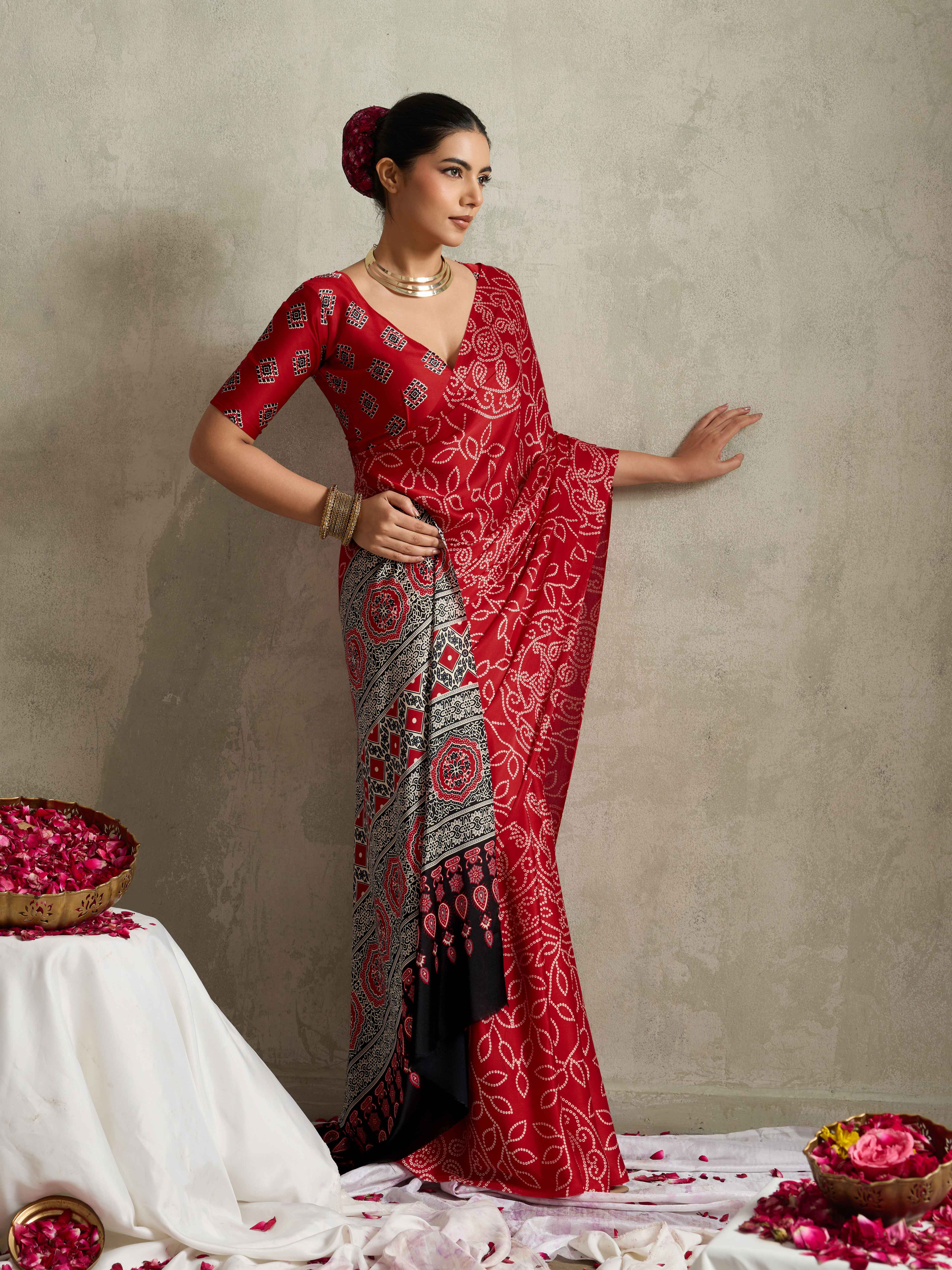Red Color Rich Looks Designer Bandhani Printed Elegant Festive Saree