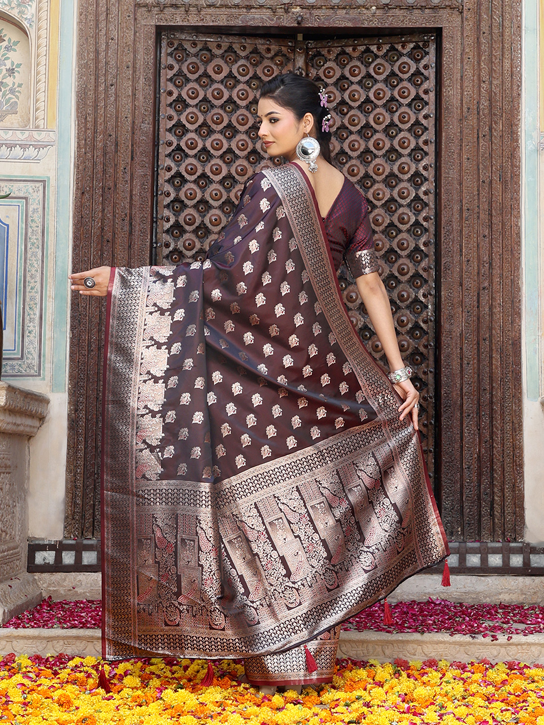 Red Color Woven Designer Ethnic Silk Fabric Graceful Partywear Saree