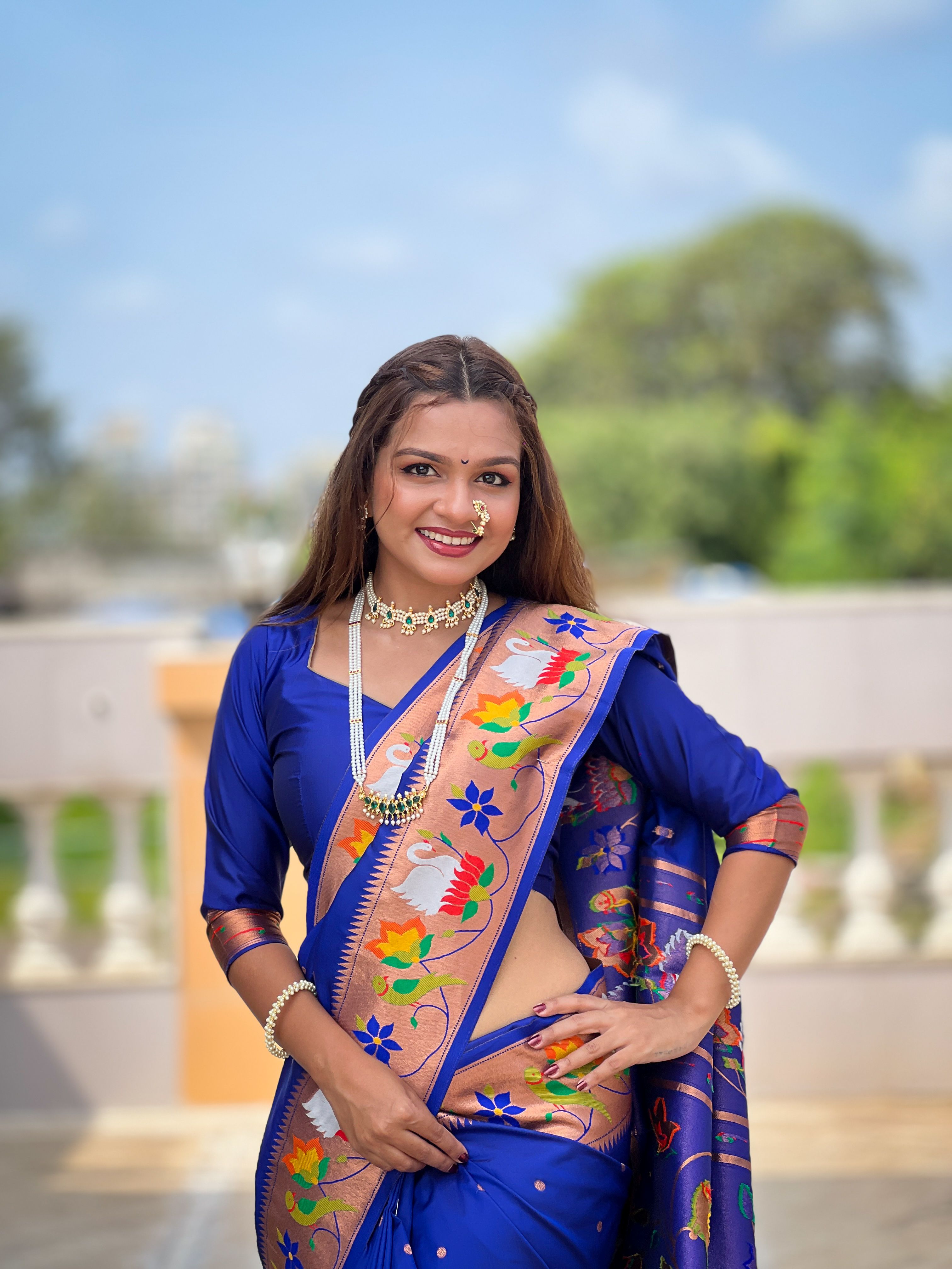 Royal Blue Color Paithani Silk Woven Meenakari Jacquard Designer Heavy Wedding Special Saree