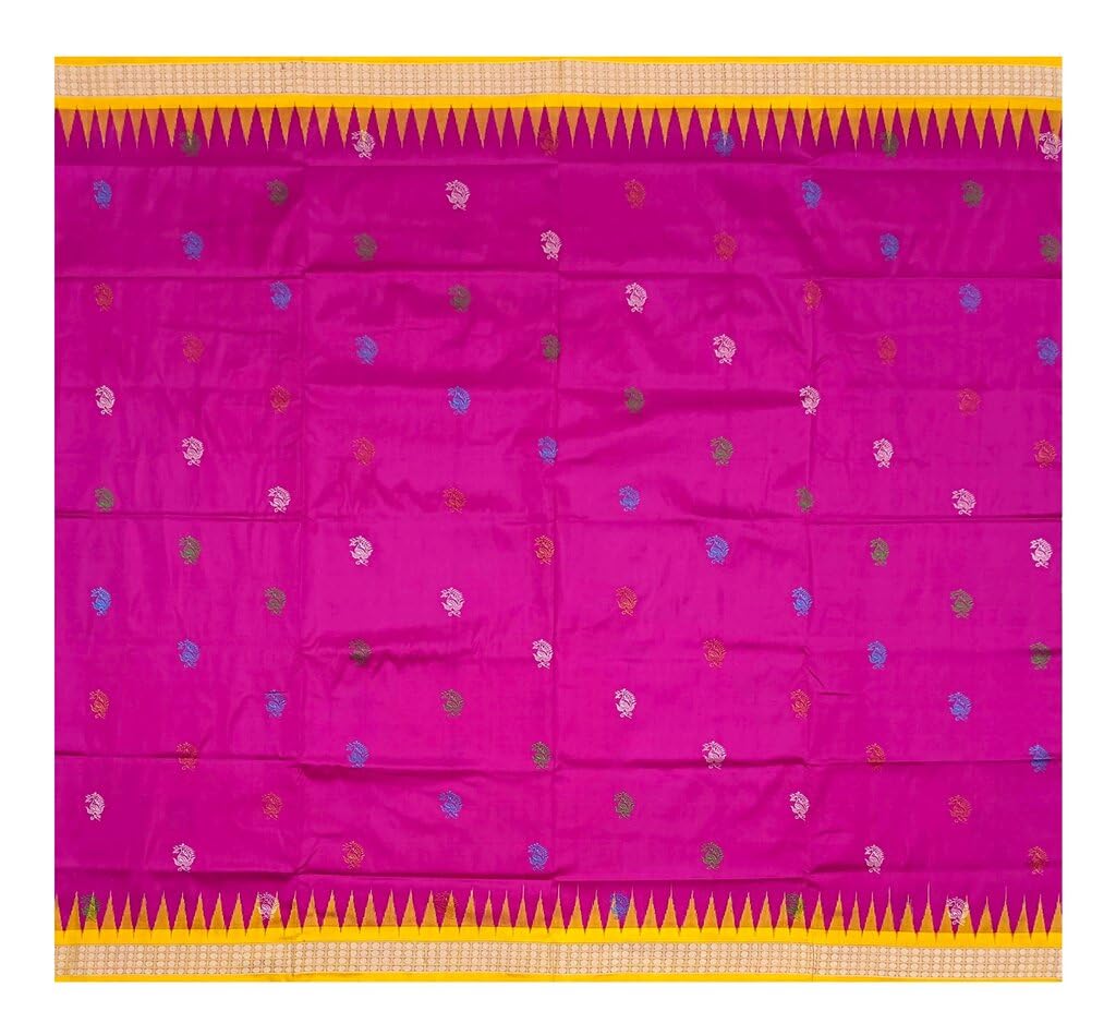 SAMBALPURI BANDHA CRAFT sambalpuri bomkai silk saree with blouse piece(Peacock motifs in pink color base with multi color pallu)