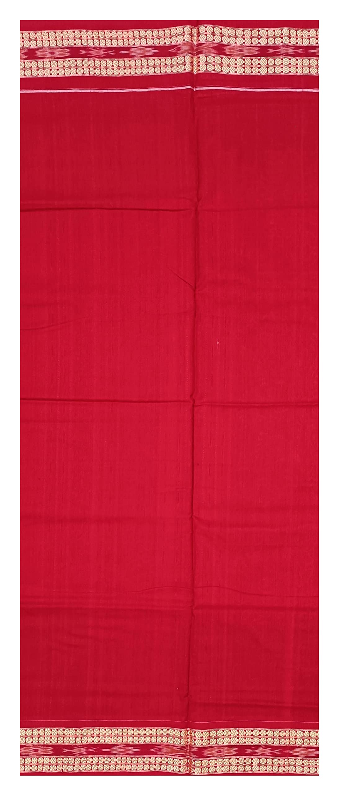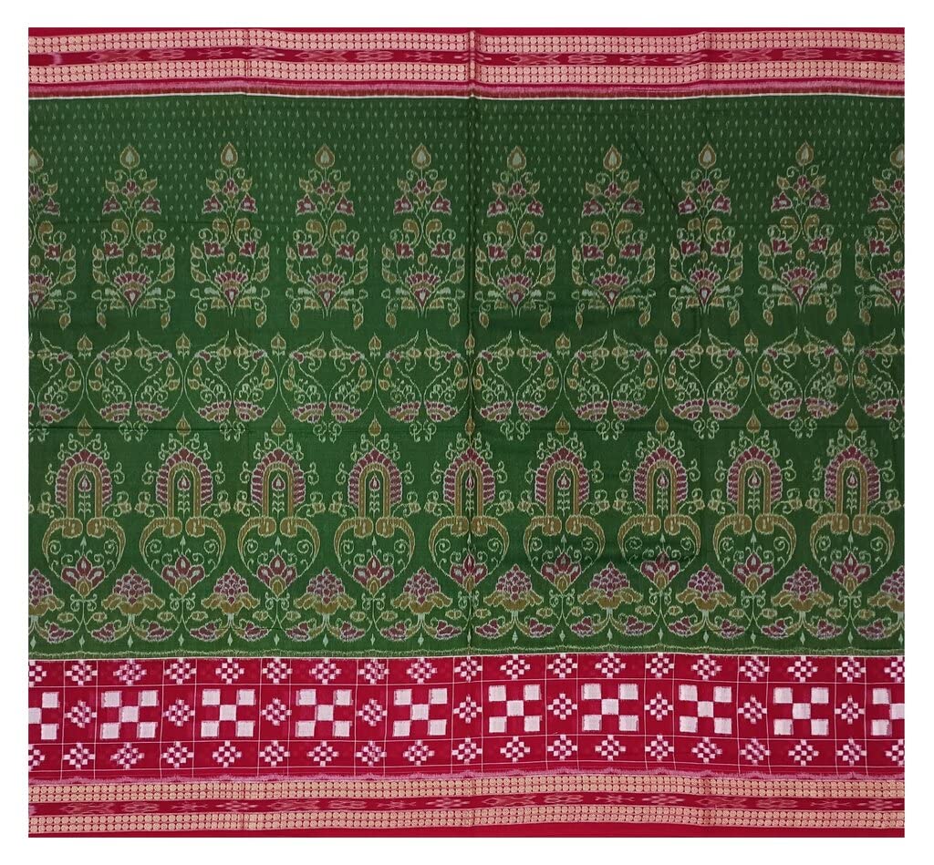 SAMBALPURI BANDHA CRAFT sambalpuri cotton saree with blouse piece(Pasapalli and Sankh design in mehendi green and red colors combination)