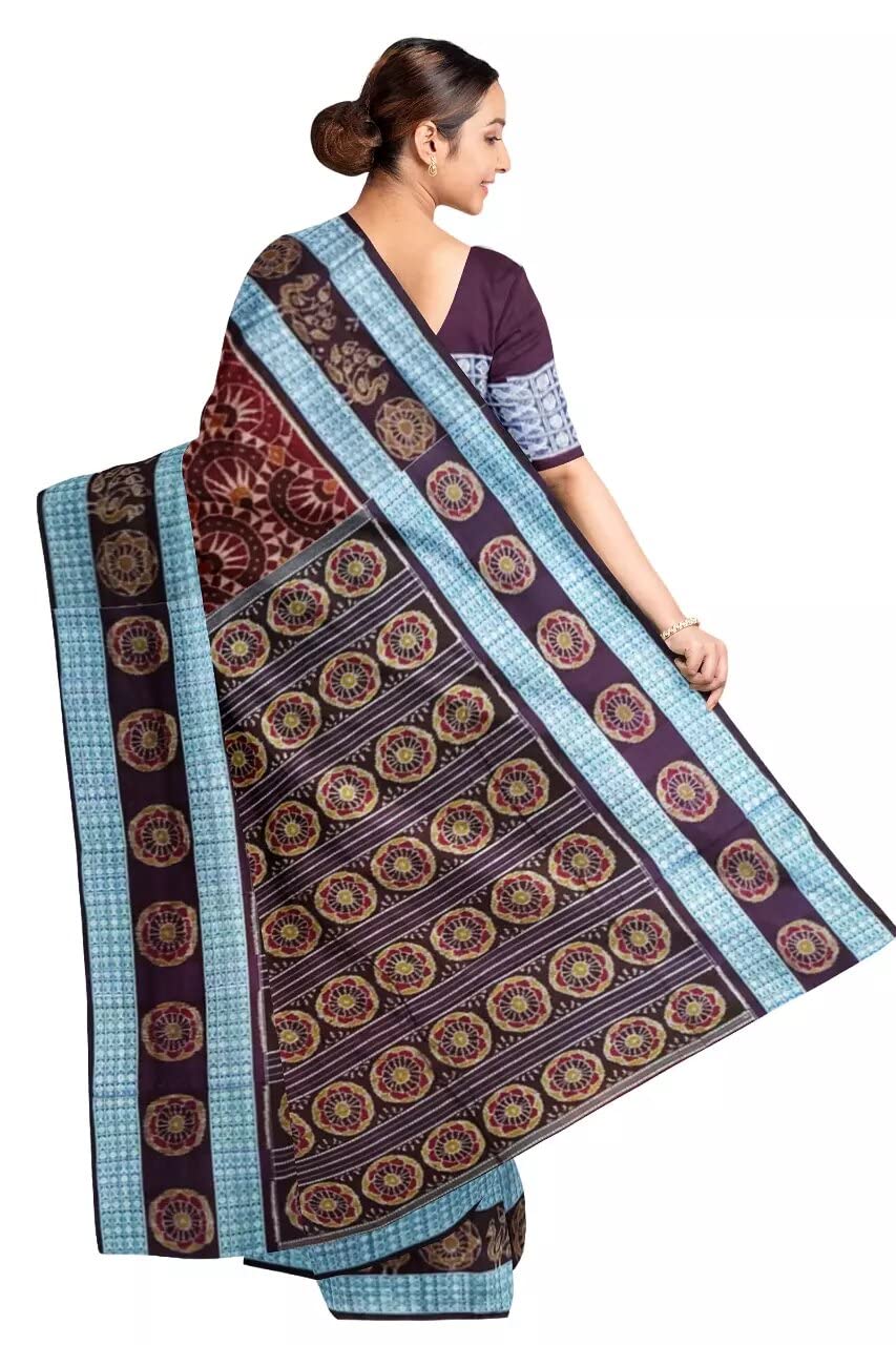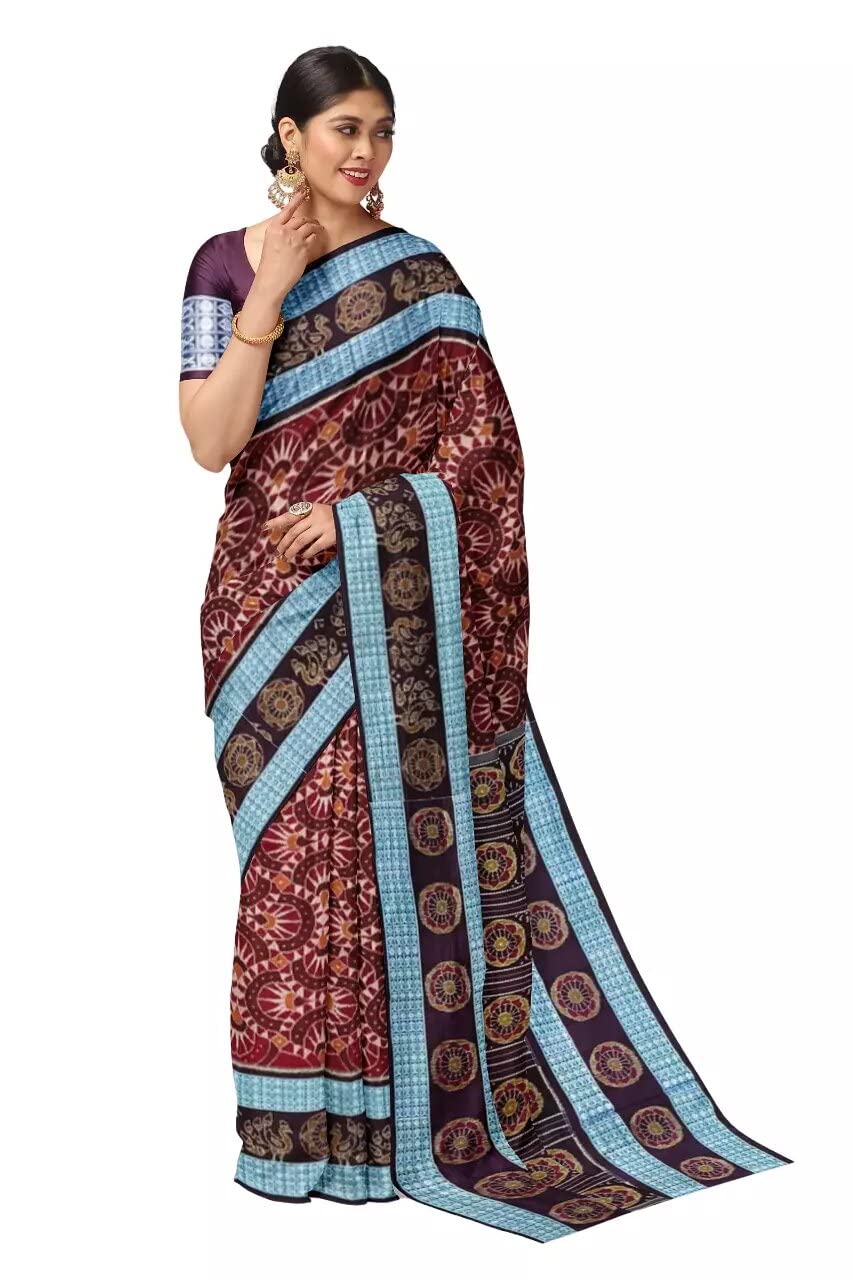Sambalpuri cotton saree with blouse piece (3D design in coffee color base)