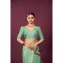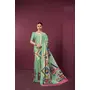 Sea Green Color Malai Crepe Silk Fabric Designer Digital Printed Ceremonial Partywear Saree