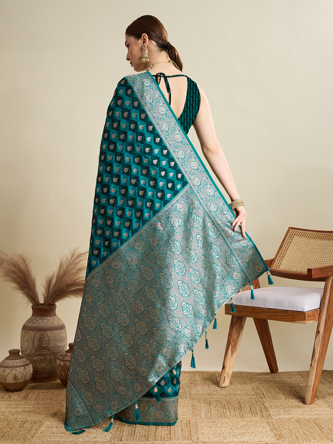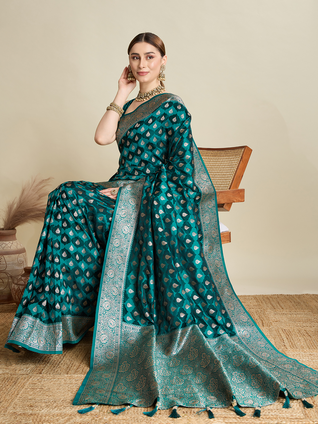 Sea Green Color Satin Silk Wevon Jari Designer Graceful Ethnic Saree