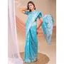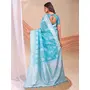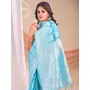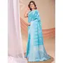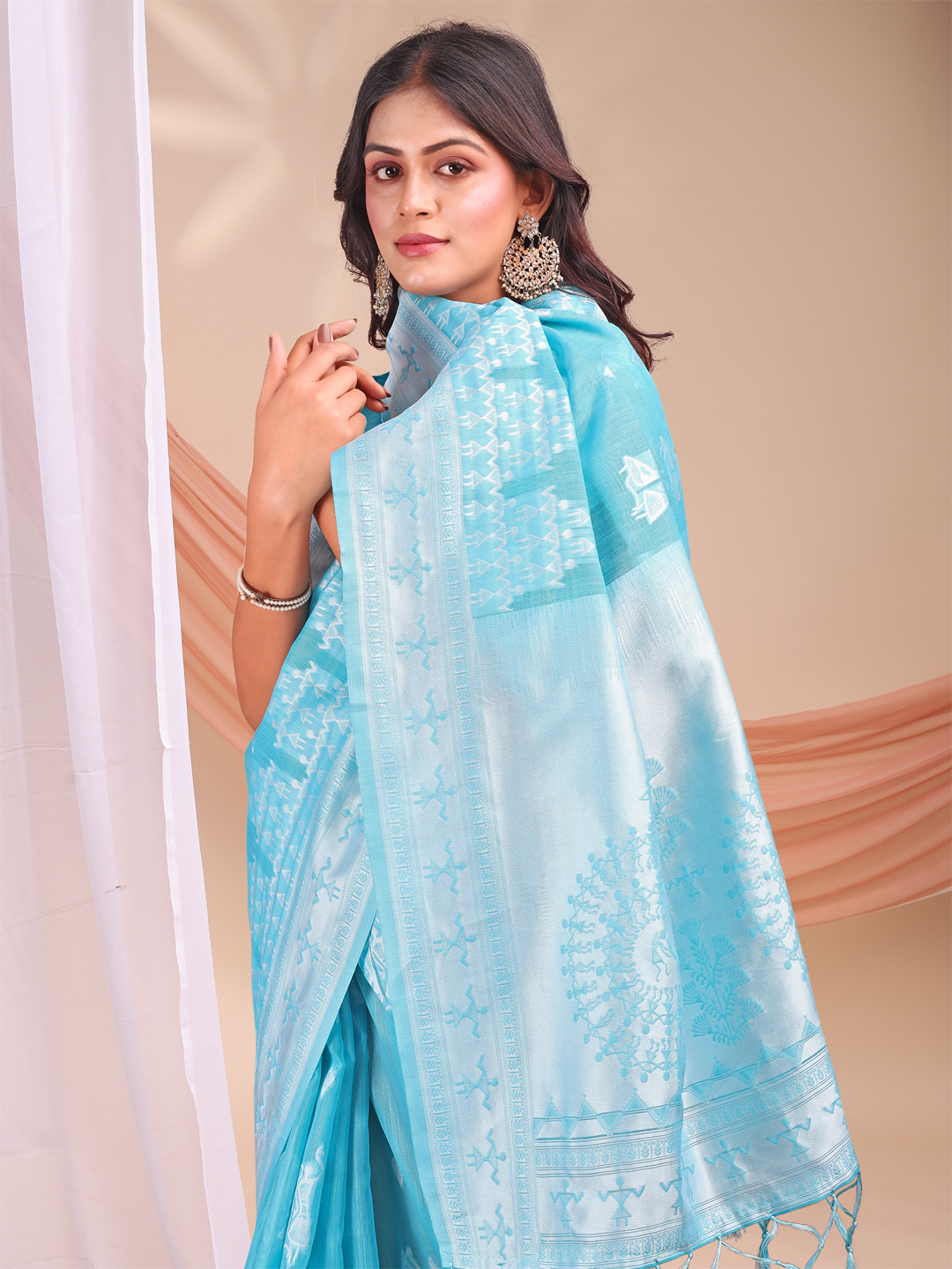 Sky Blue Color Linen Cotton Fabric Wevon Jacquard Designer Beautiful Partywear Saree