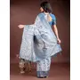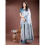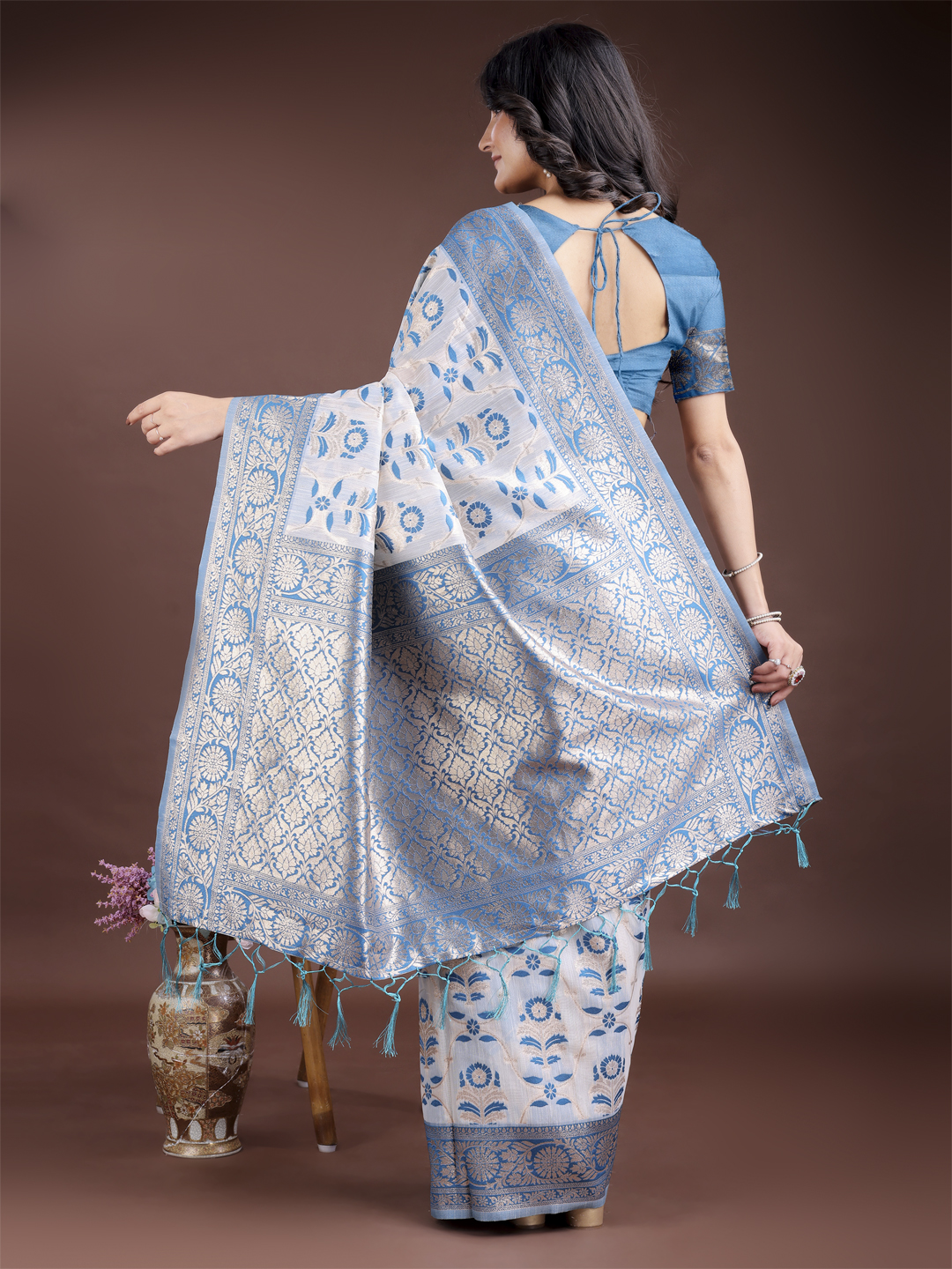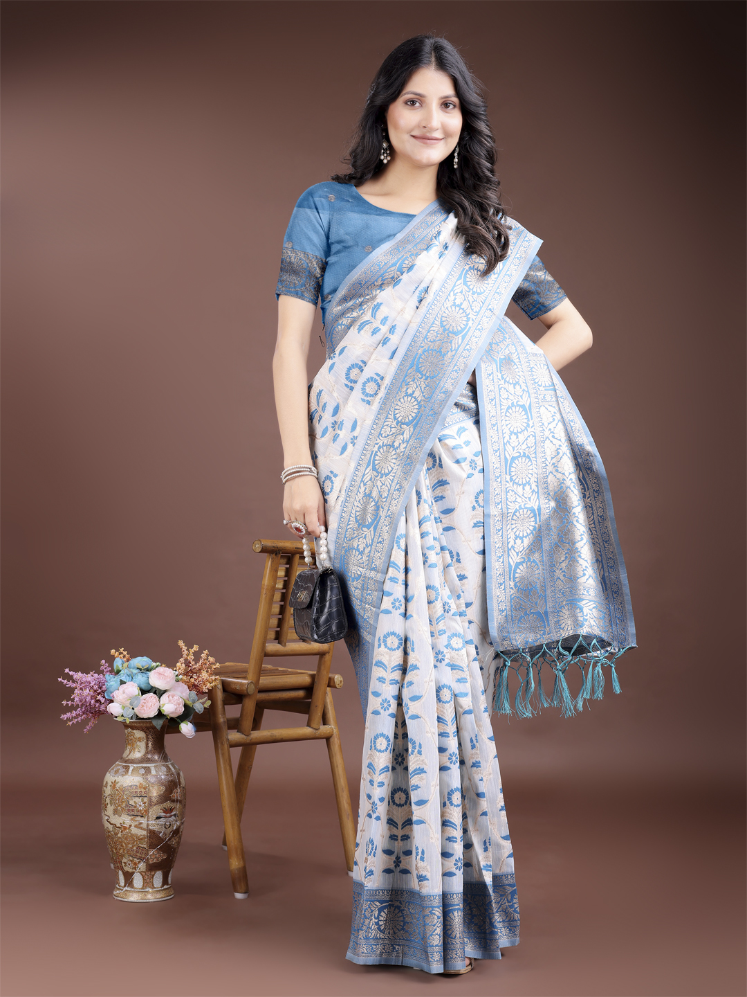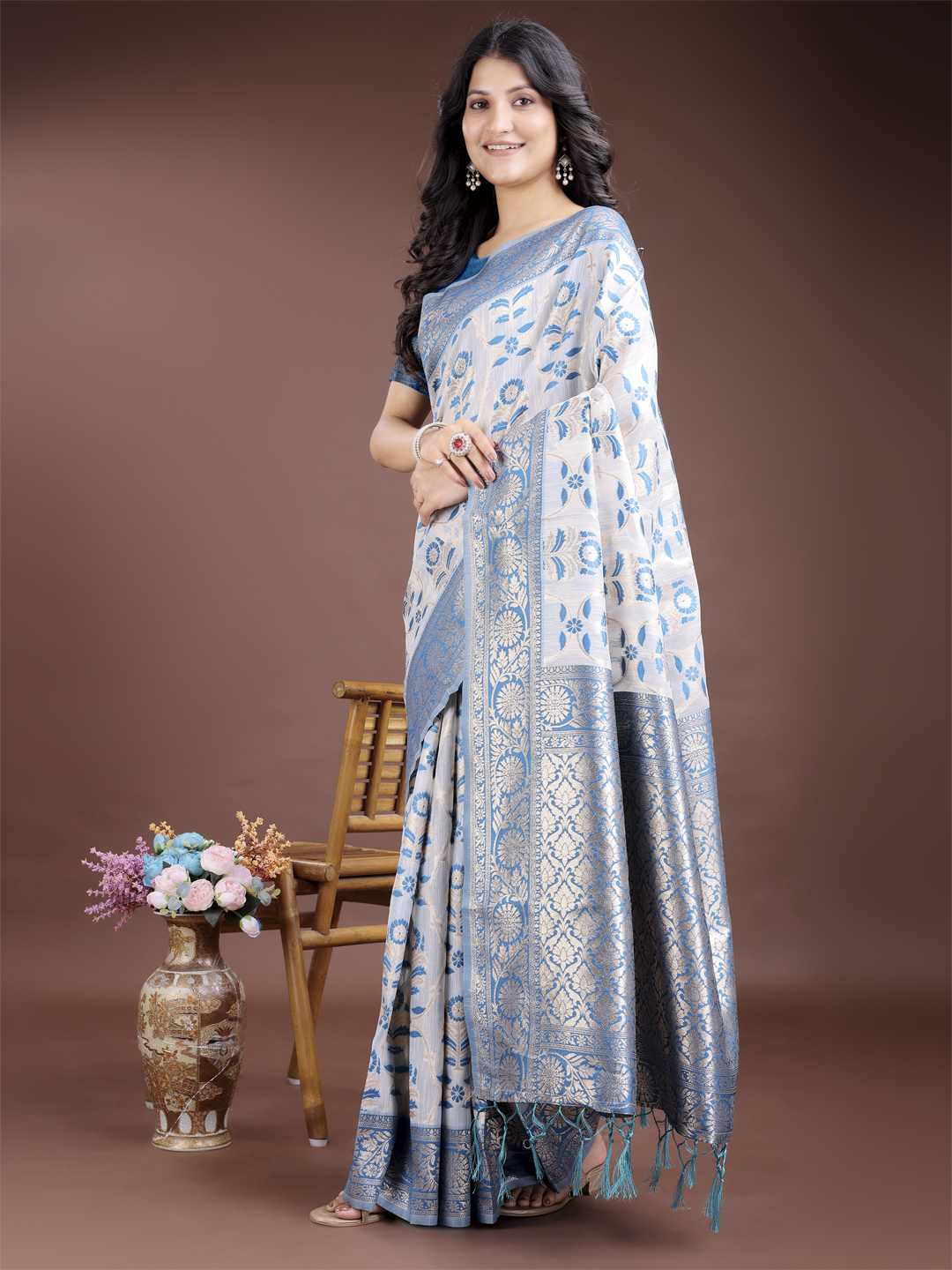 Sky Blue Color Linen Cotton Wevon Jacquard Designer Beautiful Festive Saree
