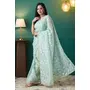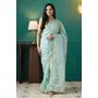 Sky Blue Color Organza Fabric Solid Designer Foil Printed Saree