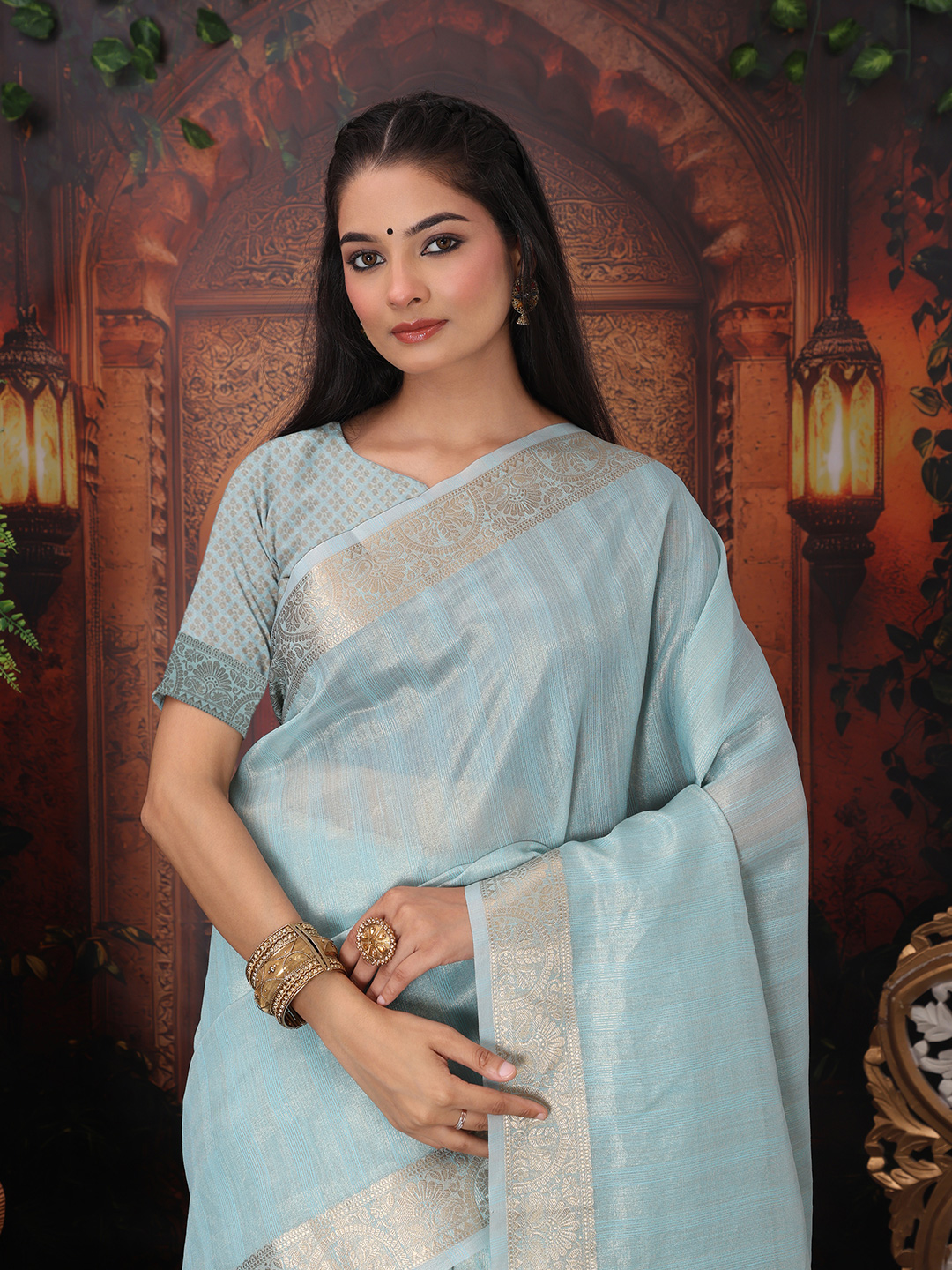 Sky Blue Color Organza Fabric Woven Designer Trendy Ethnic Saree