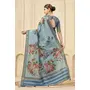 Sky Blue Color Signora Jari Checks Silk Fabric Floral Digital Print with Foil Print Graceful Ceremonial Saree