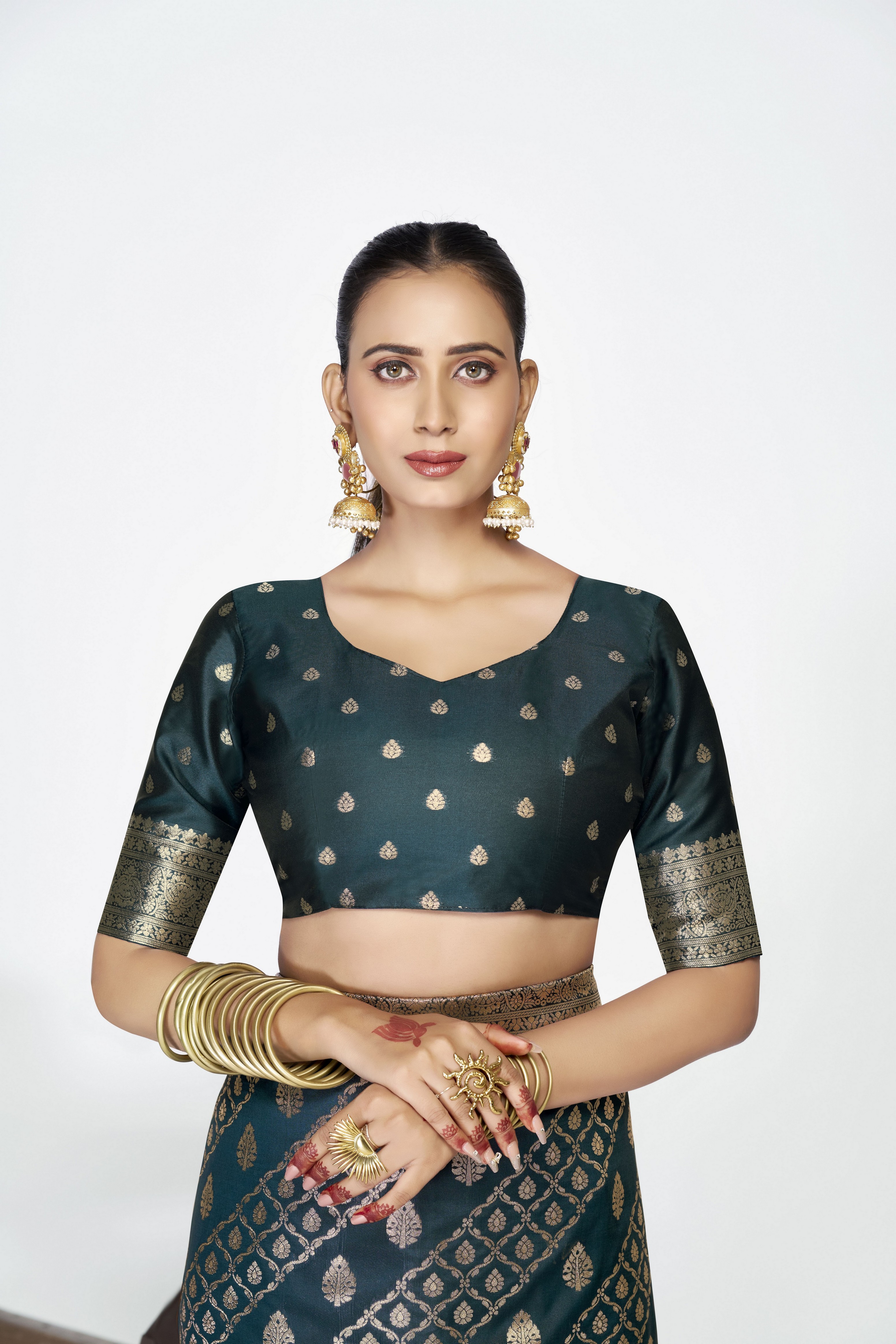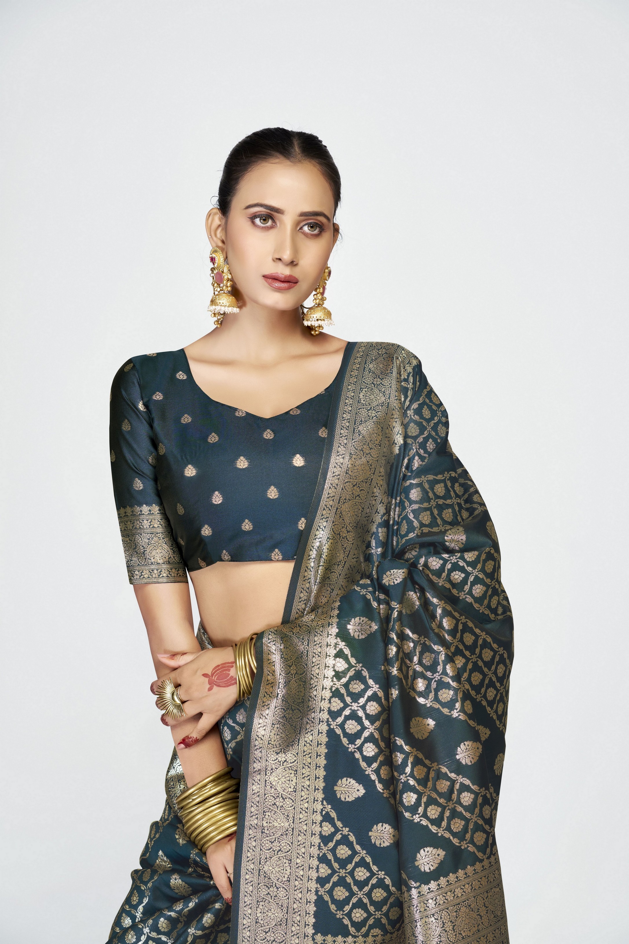 Teal Blue color Banarasi Silk fabric Woven Zari Designer Saree