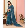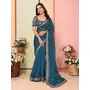 Teal Blue Color Organza Fabric Designer Embroidery Work Patywear Saree
