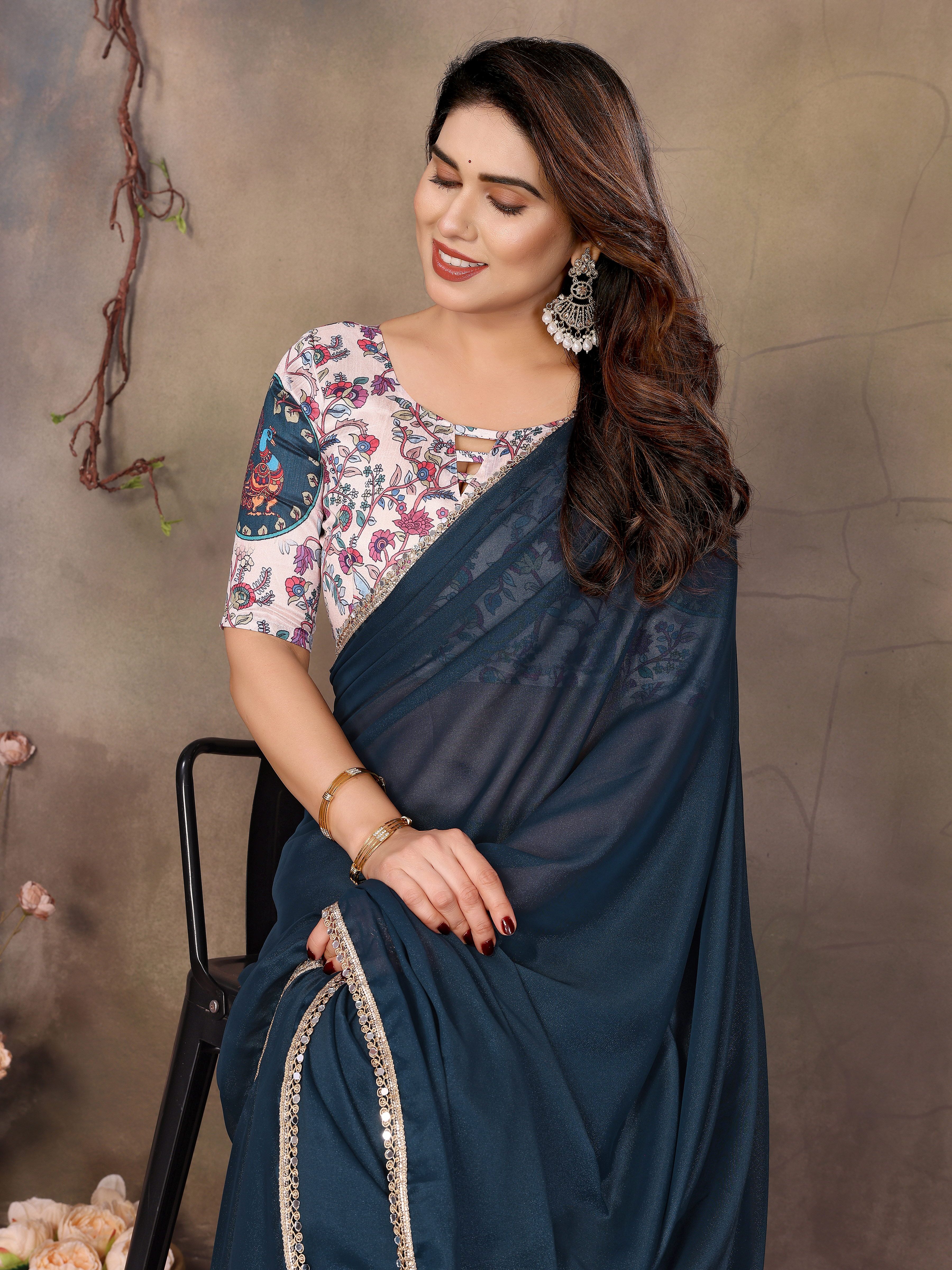 Teal Blue Color Solid Color Fancy Ethnic Saree For Ceremonial Girlie Looks
