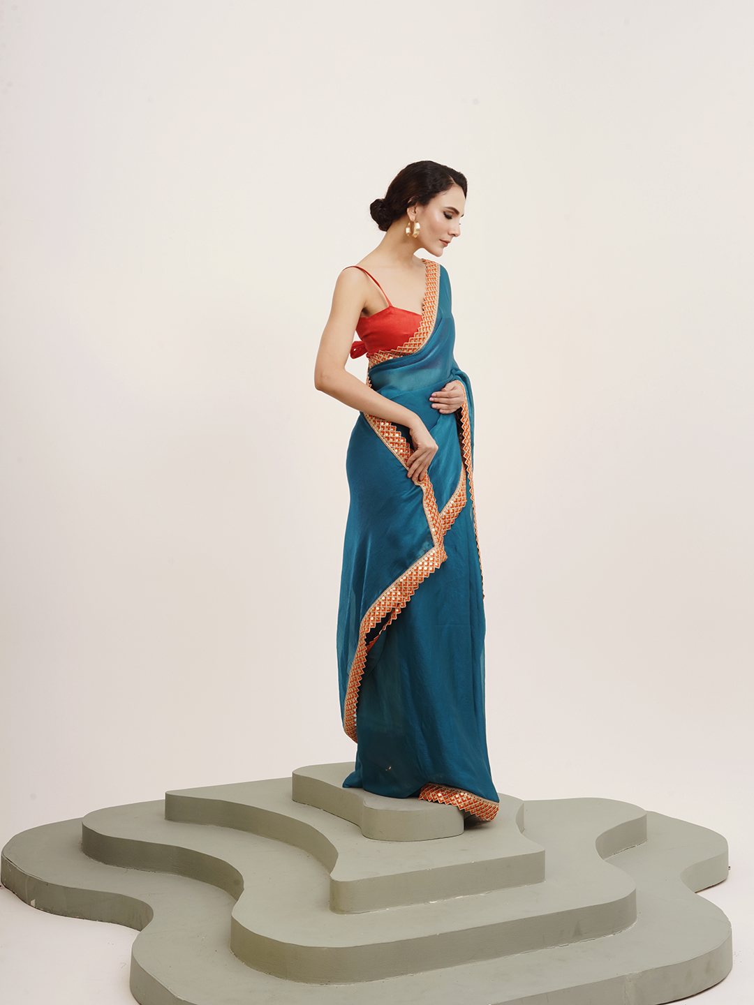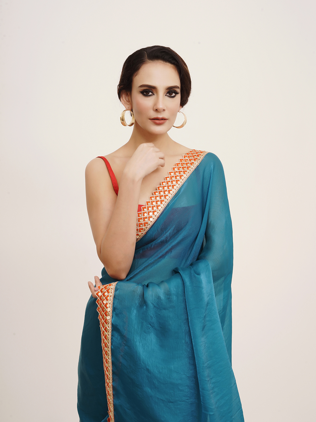 Made using high-quality fabrics such as silk, soft silk, georgette, organza, chiffon, crepe, linen, cotton blends ...etc .