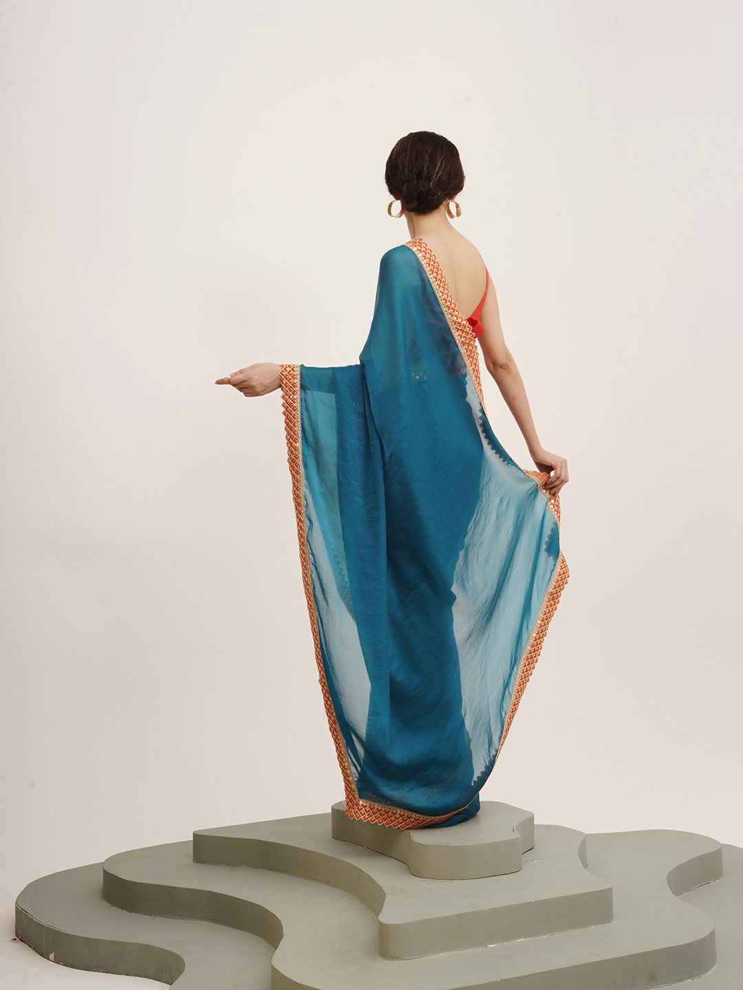 Teal Color Beautiful Partywear Embellished Sequinned Chiffon Saree