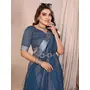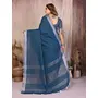 Teal Color Linen Cotton Fabric Woven Silver Jari Designer Ceremonial Saree