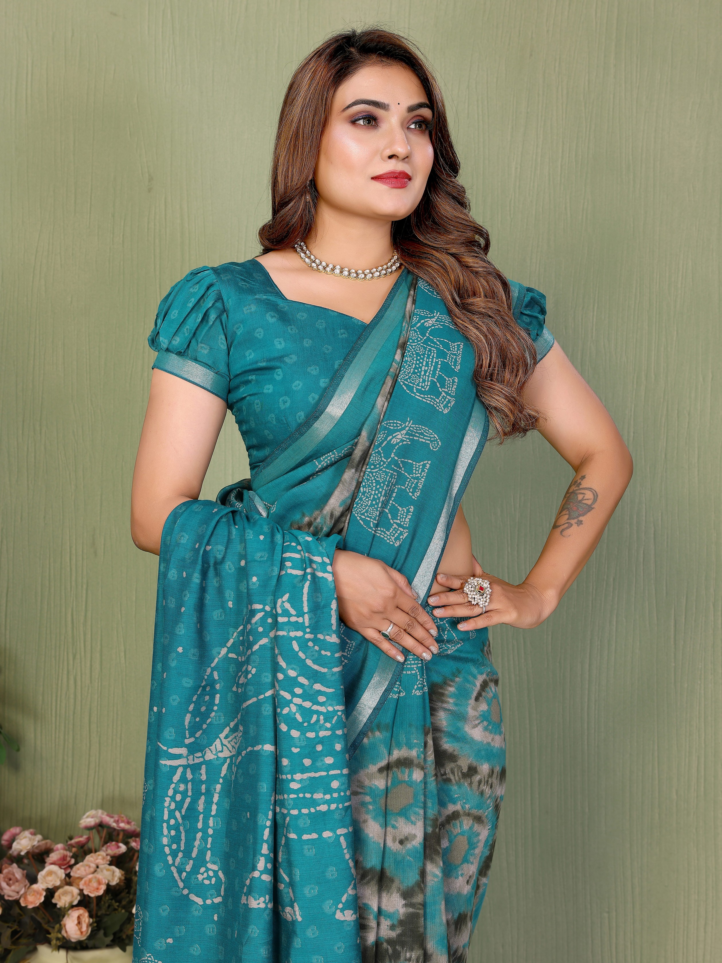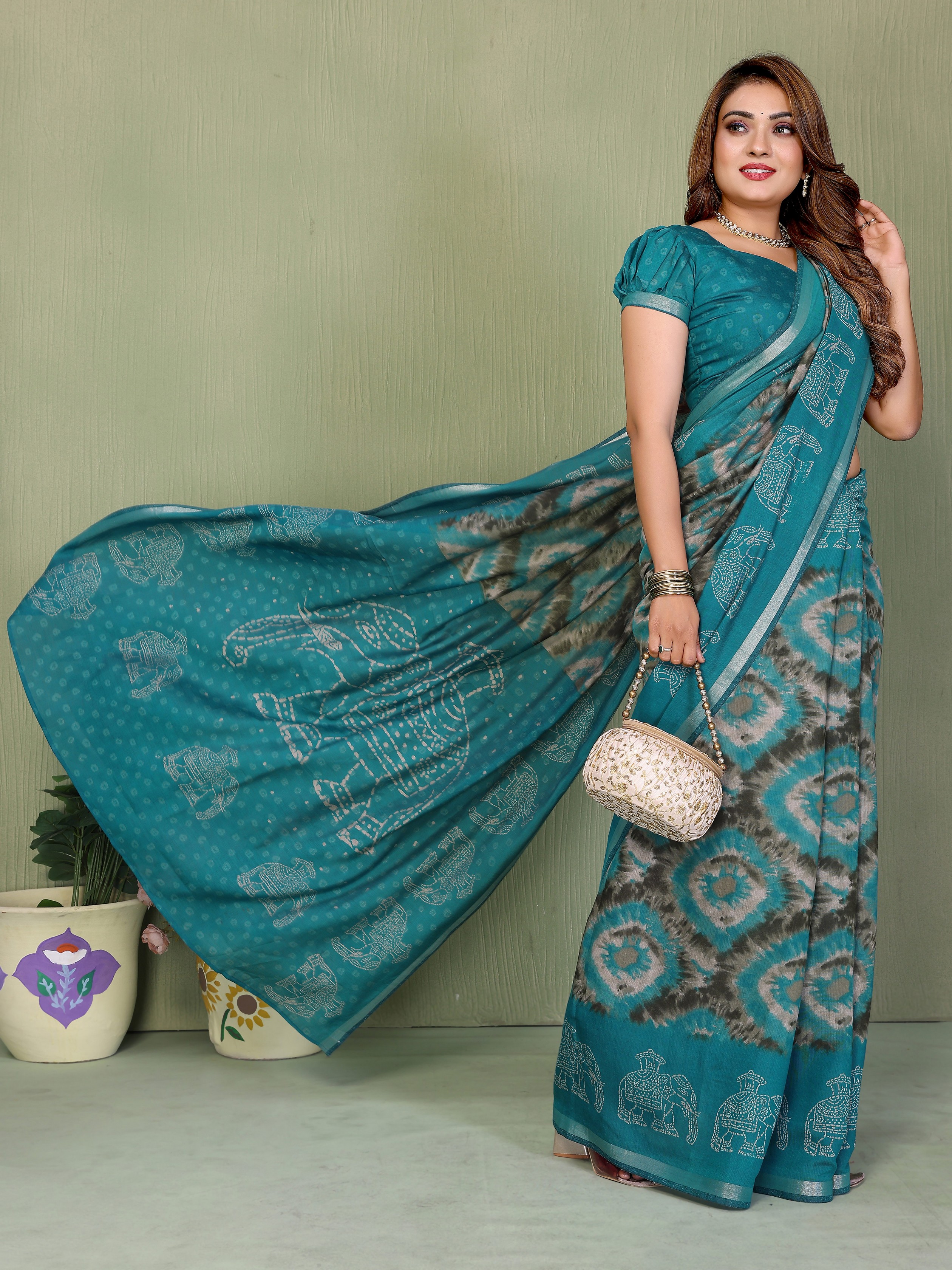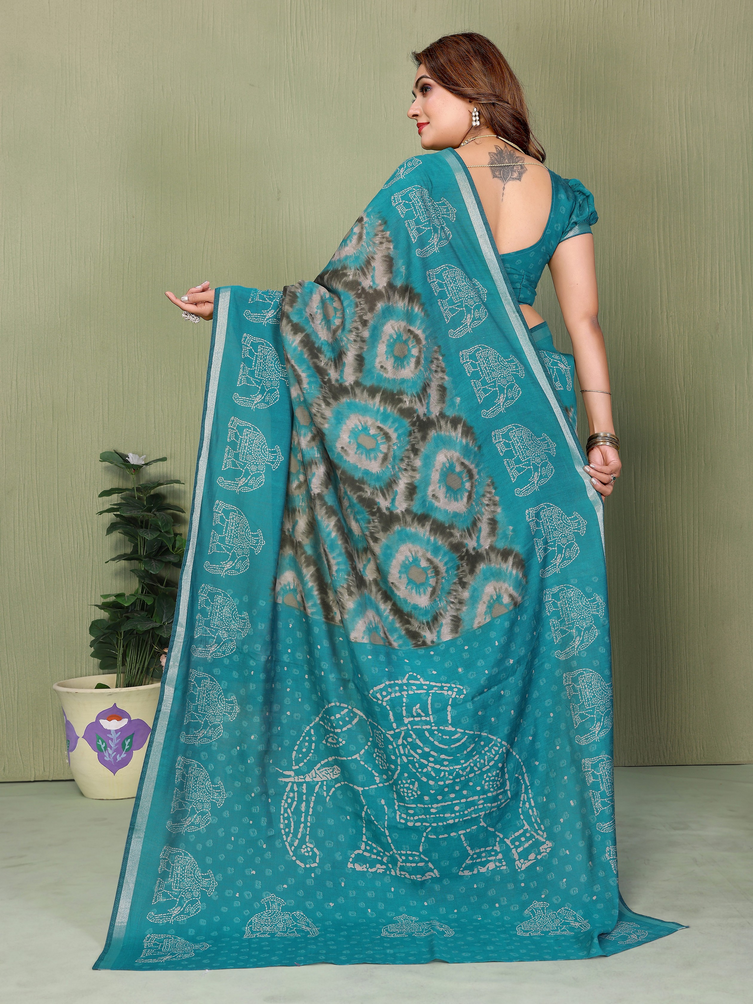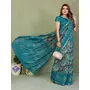 Teal Color Mul Cotton Fabric Designer Printed Festive Special Saree