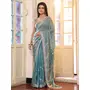 Teal Color Tissue Fabric Embroidery Work Ethnic Girlie Saree