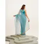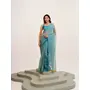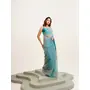 Turquoise Blue Color Beautiful Partywear Solid Satin Saree