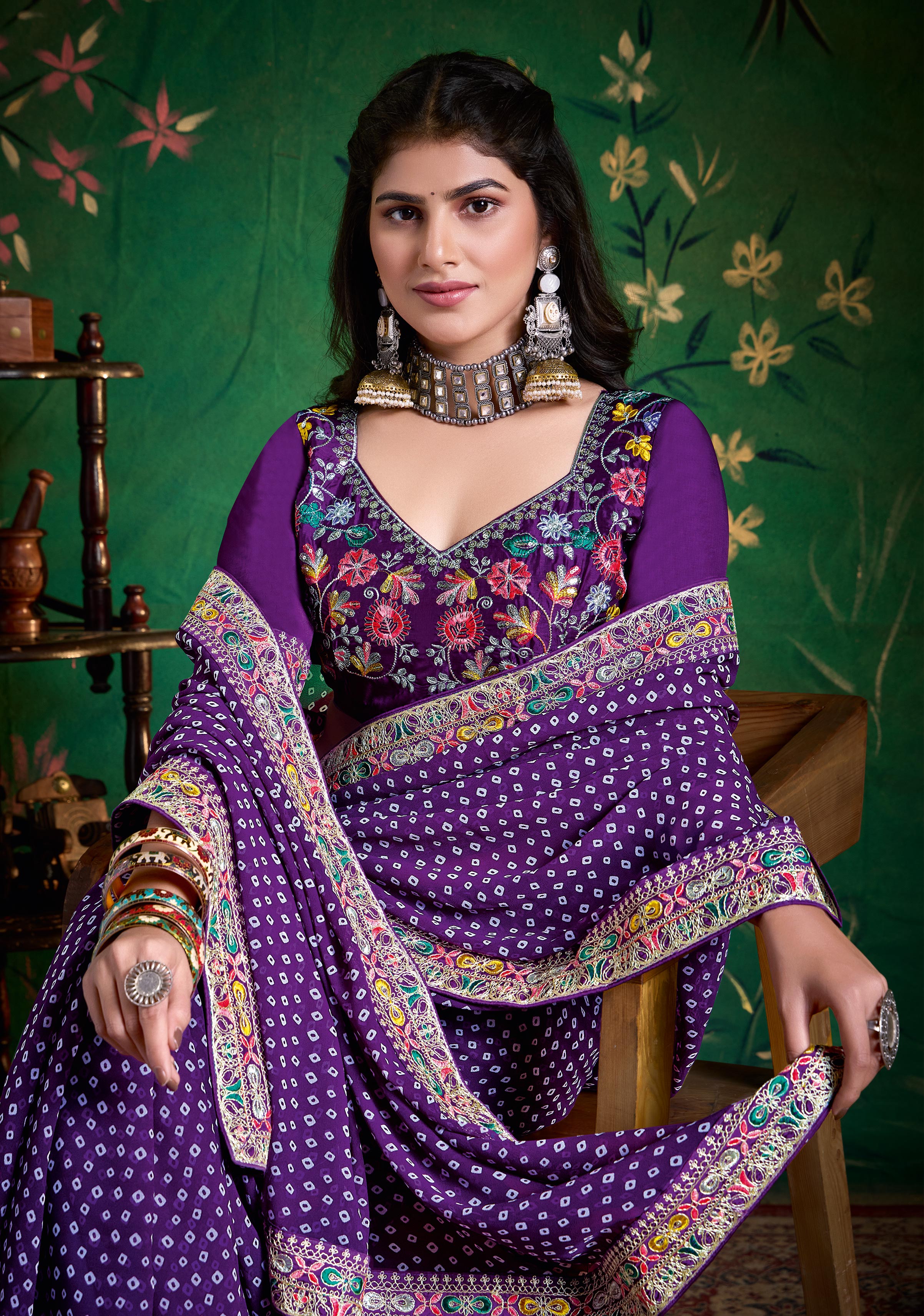 Violet Color Faux Fabric Festive Special Partywear Saree