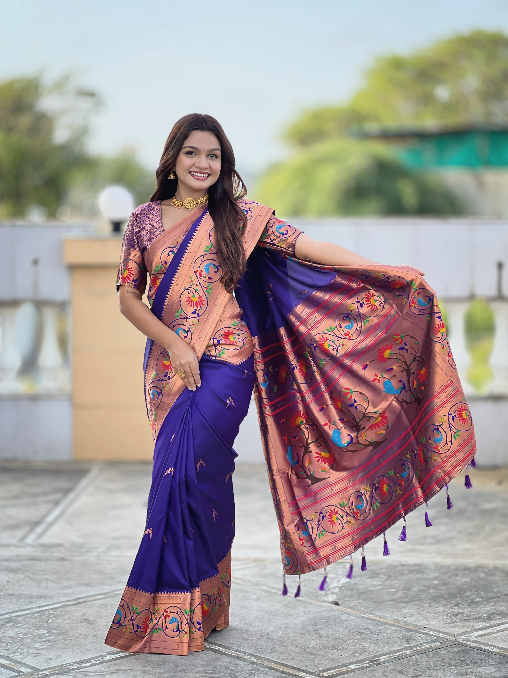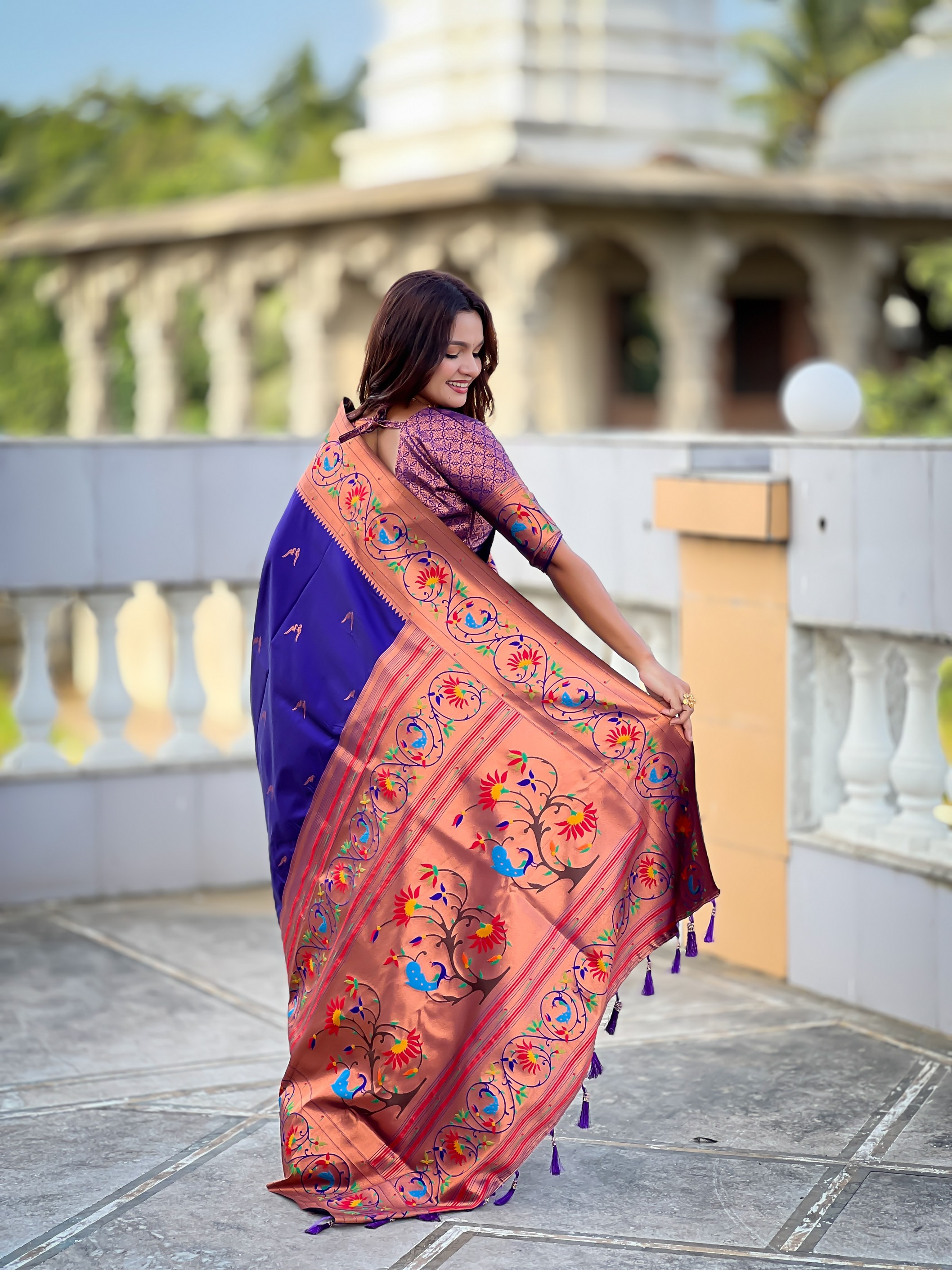 Violet Color Paithani Silk Fabric Woven Meenakari Jacquard Designer Graceful Wedding Saree