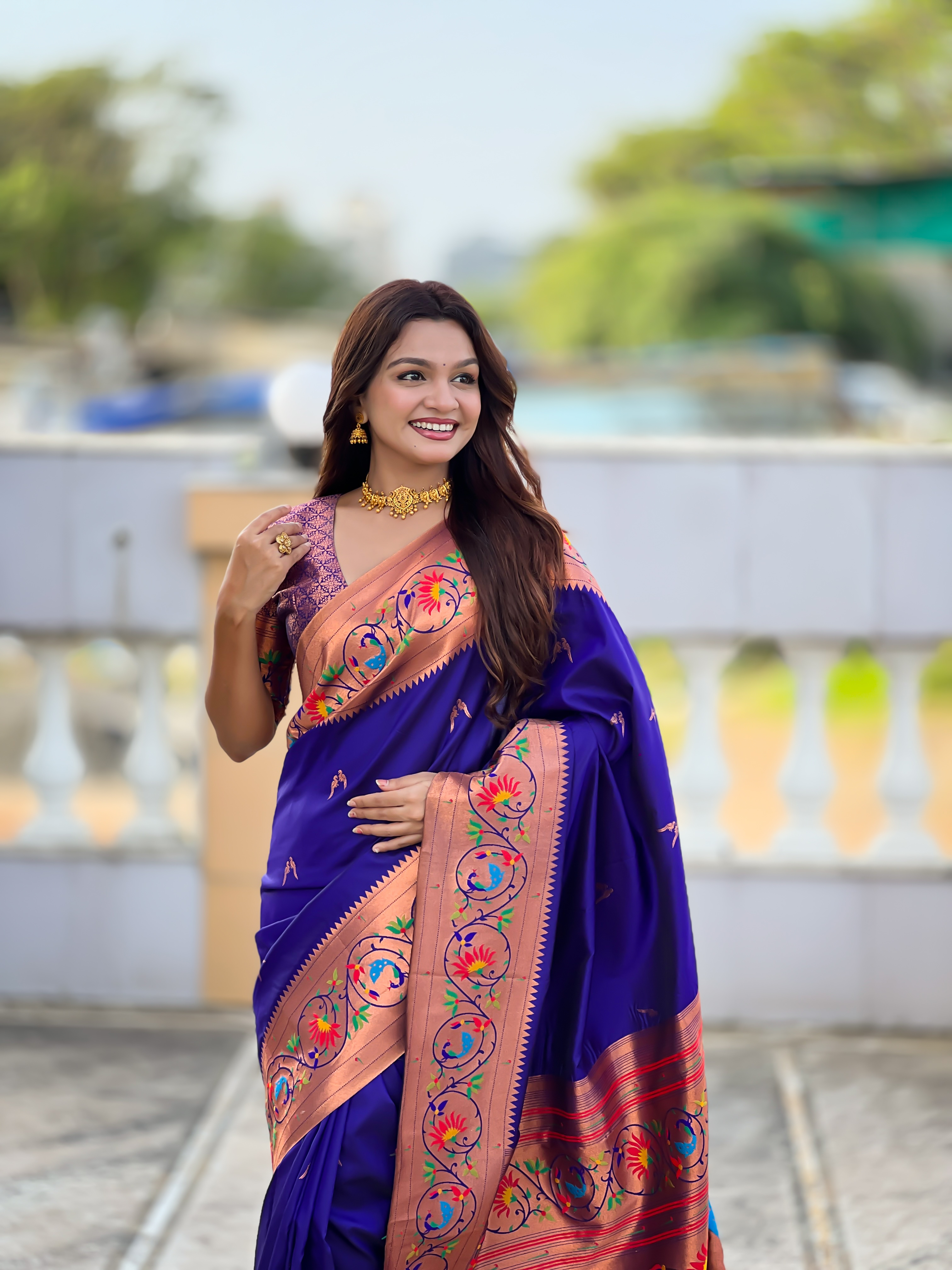 Looking These Party Wear Saree in Fine Colored.These Saree Are Paithani Silk And Blouse is Fabricated On Paithani Silk.Its Beautified With Weaving Jacquard Meenakari Designer.