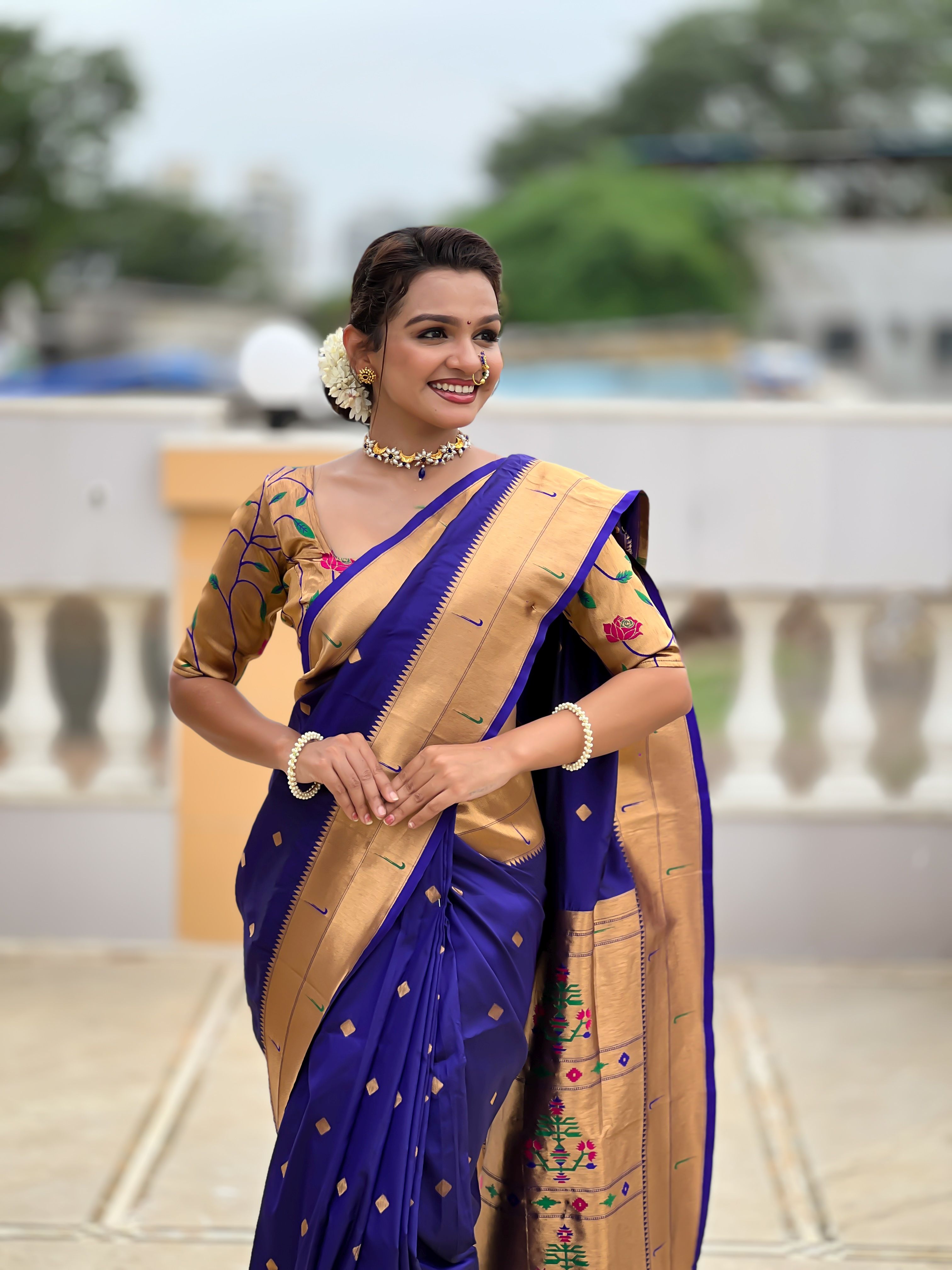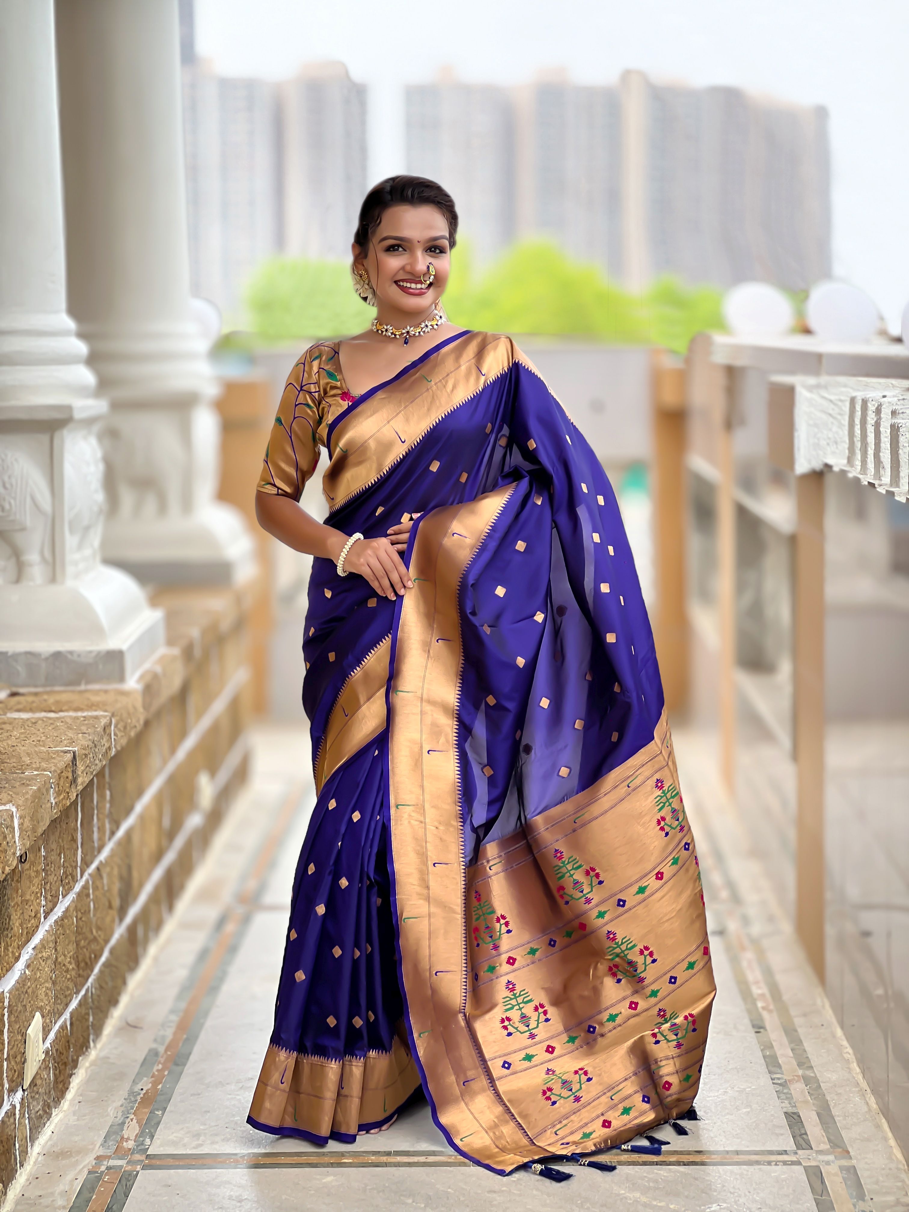 Violet Color Paithani Silk Woven Jacquard Jari Designer Ethnic Saree