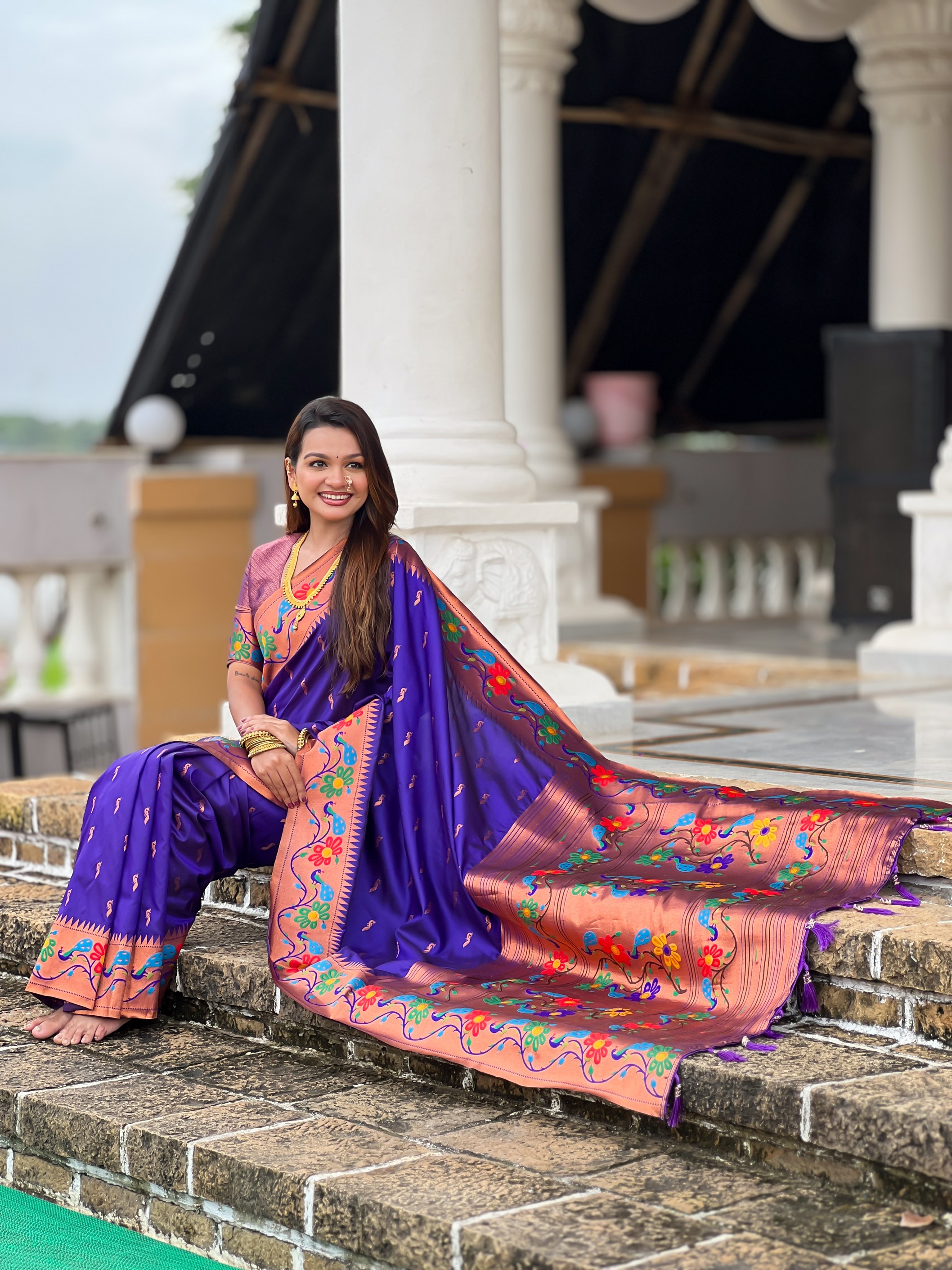 Violet Color Woven Meenakari Jacquard Designer Paithani Silk Fabric Ethnic Saree